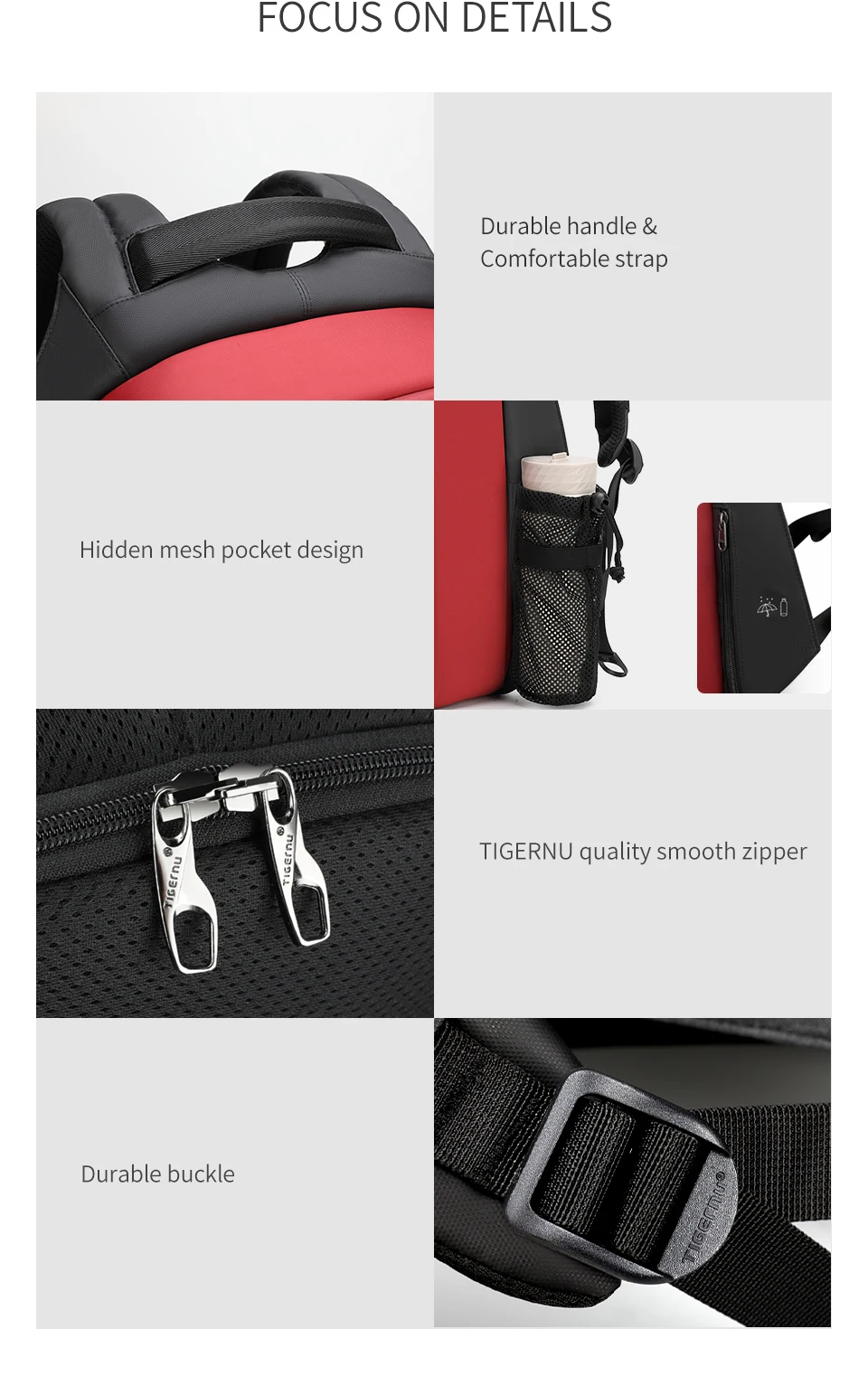 6. Side hidden pocket: water bottle and umbrella could be placed.