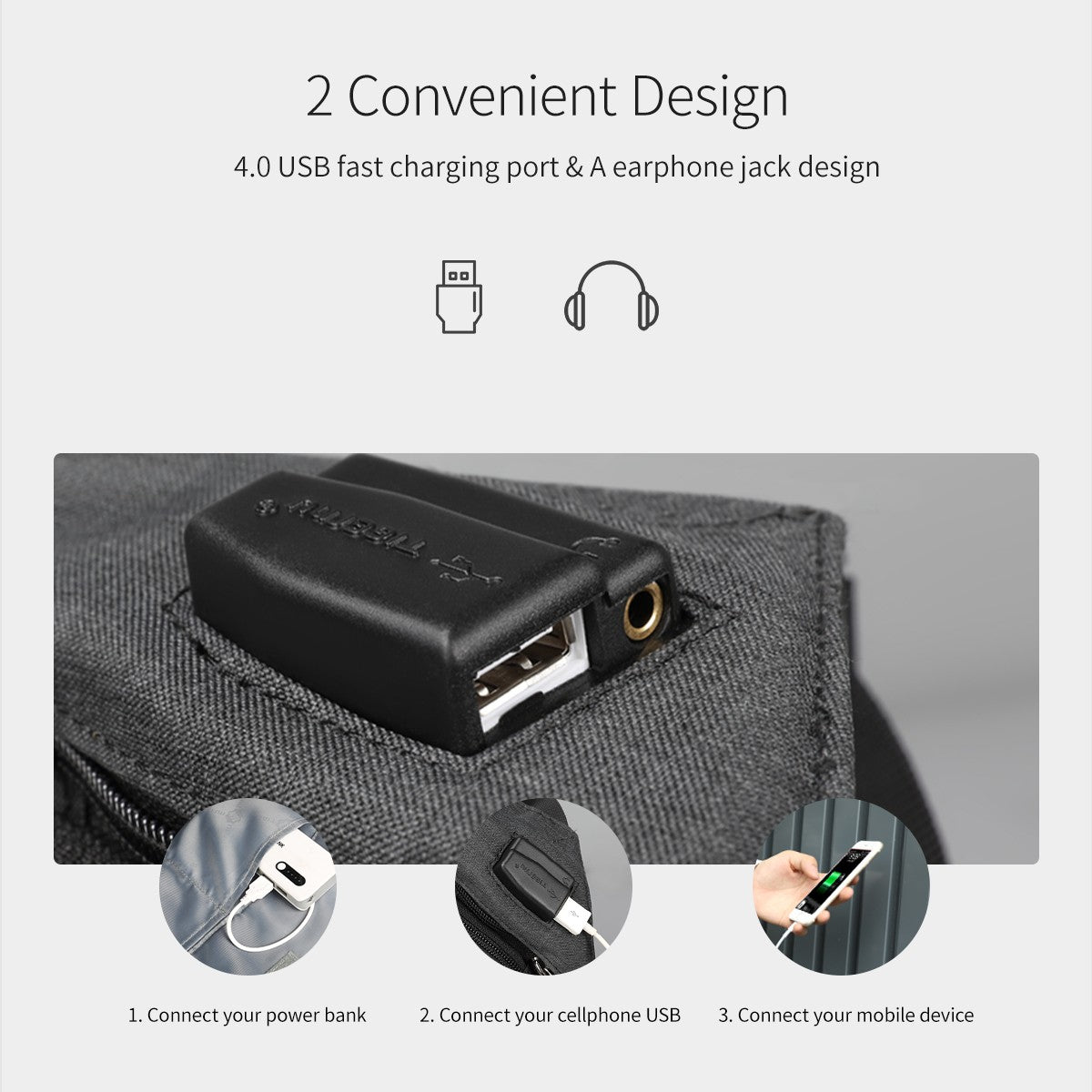 1. 5.0 Earphone jack & External USB charging port design.