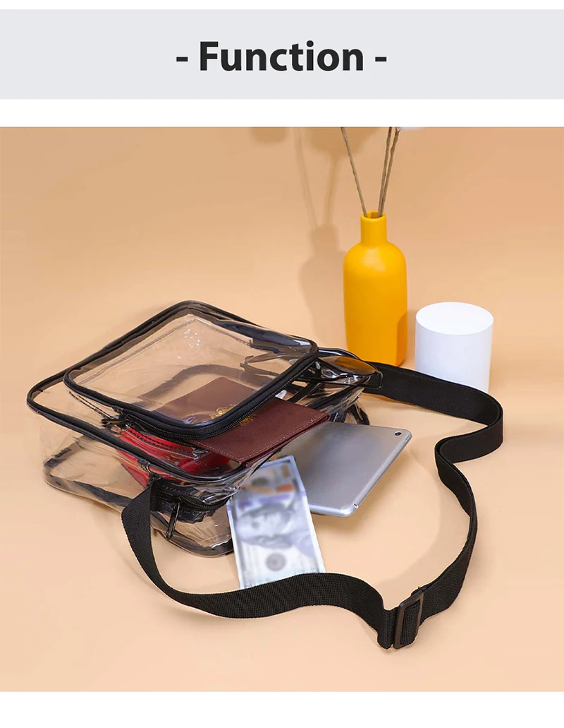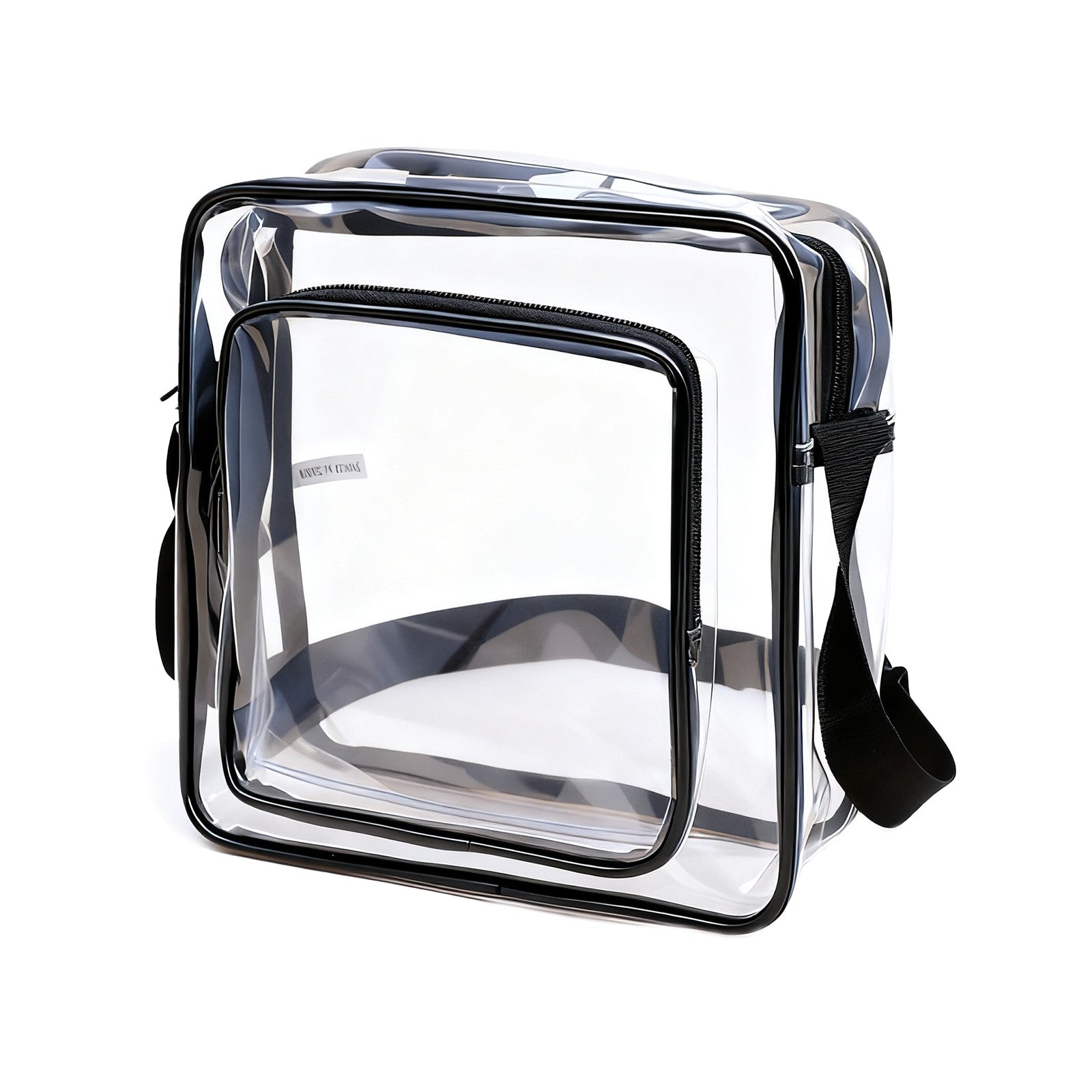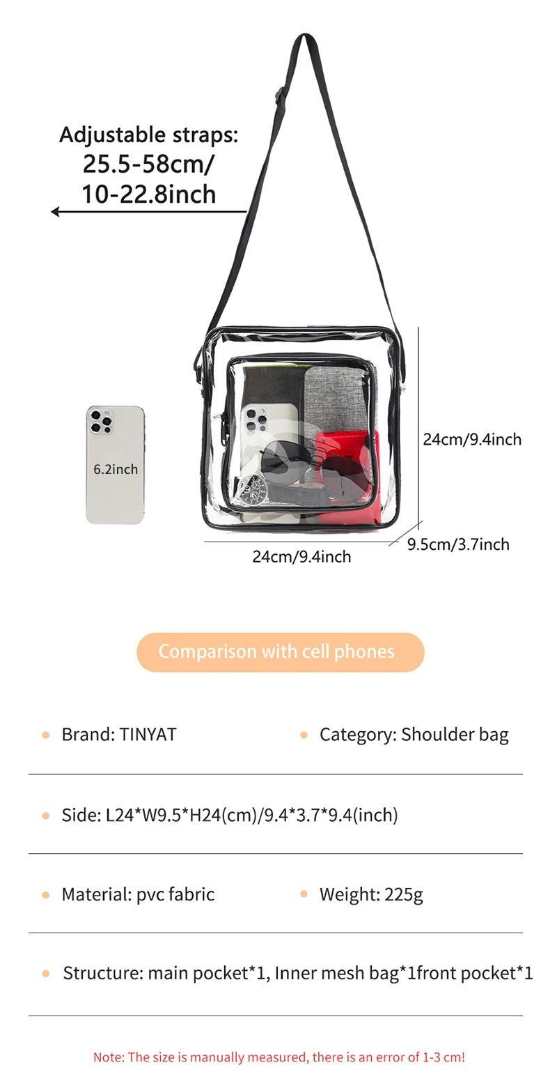 TINYAT Clear Men's Crossbody Bag PVC Double Pocket Travel Bag Adjustable Shoulder Straps Single Shoulder Bag for Daily Commuting