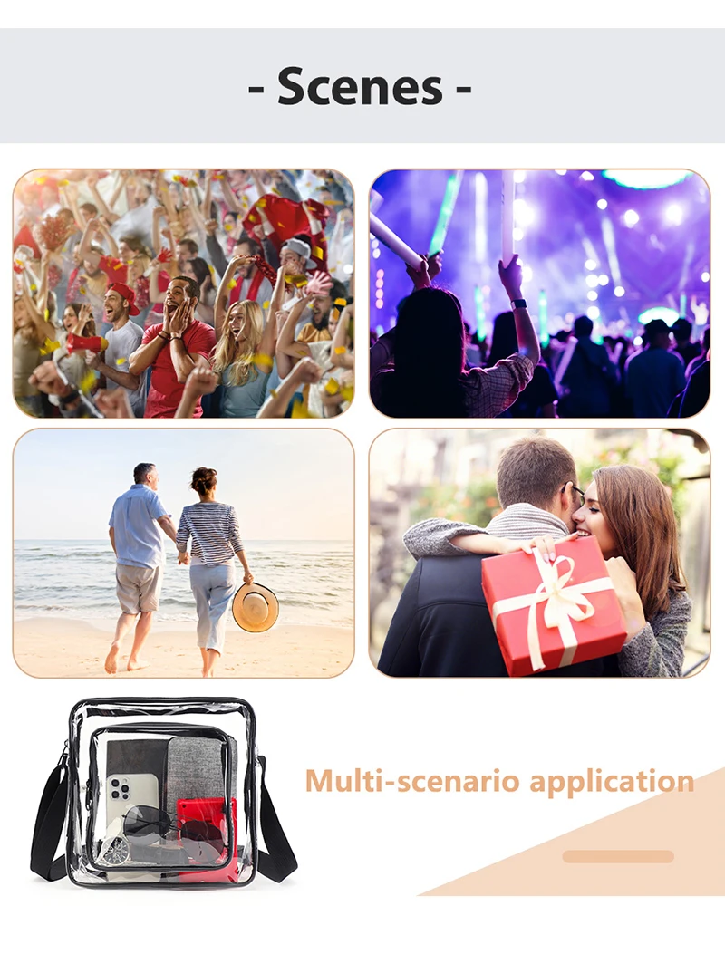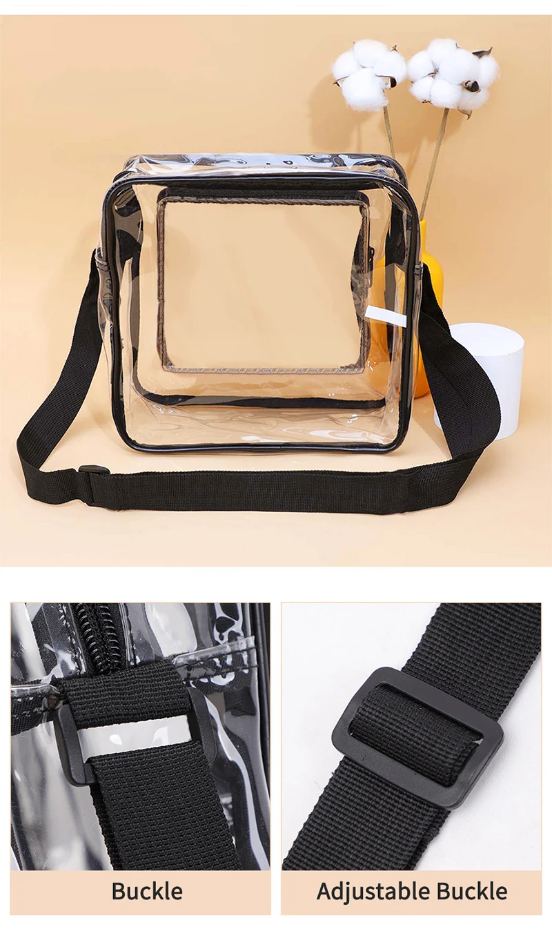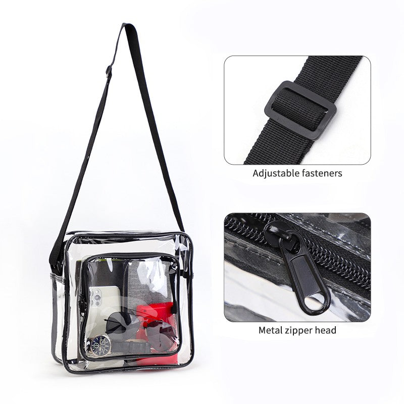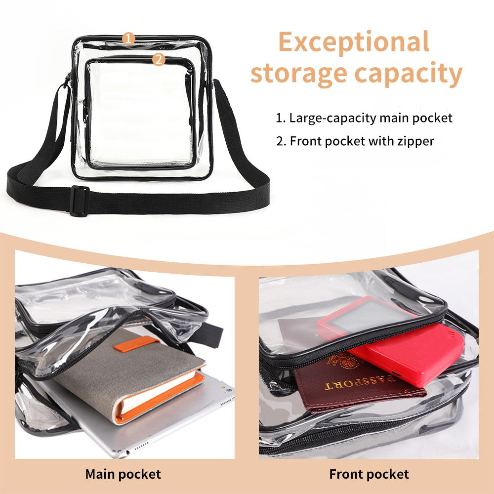 TINYAT Clear Men's Crossbody Bag PVC Double Pocket Travel Bag Adjustable Shoulder Straps Single Shoulder Bag for Daily Commuting
