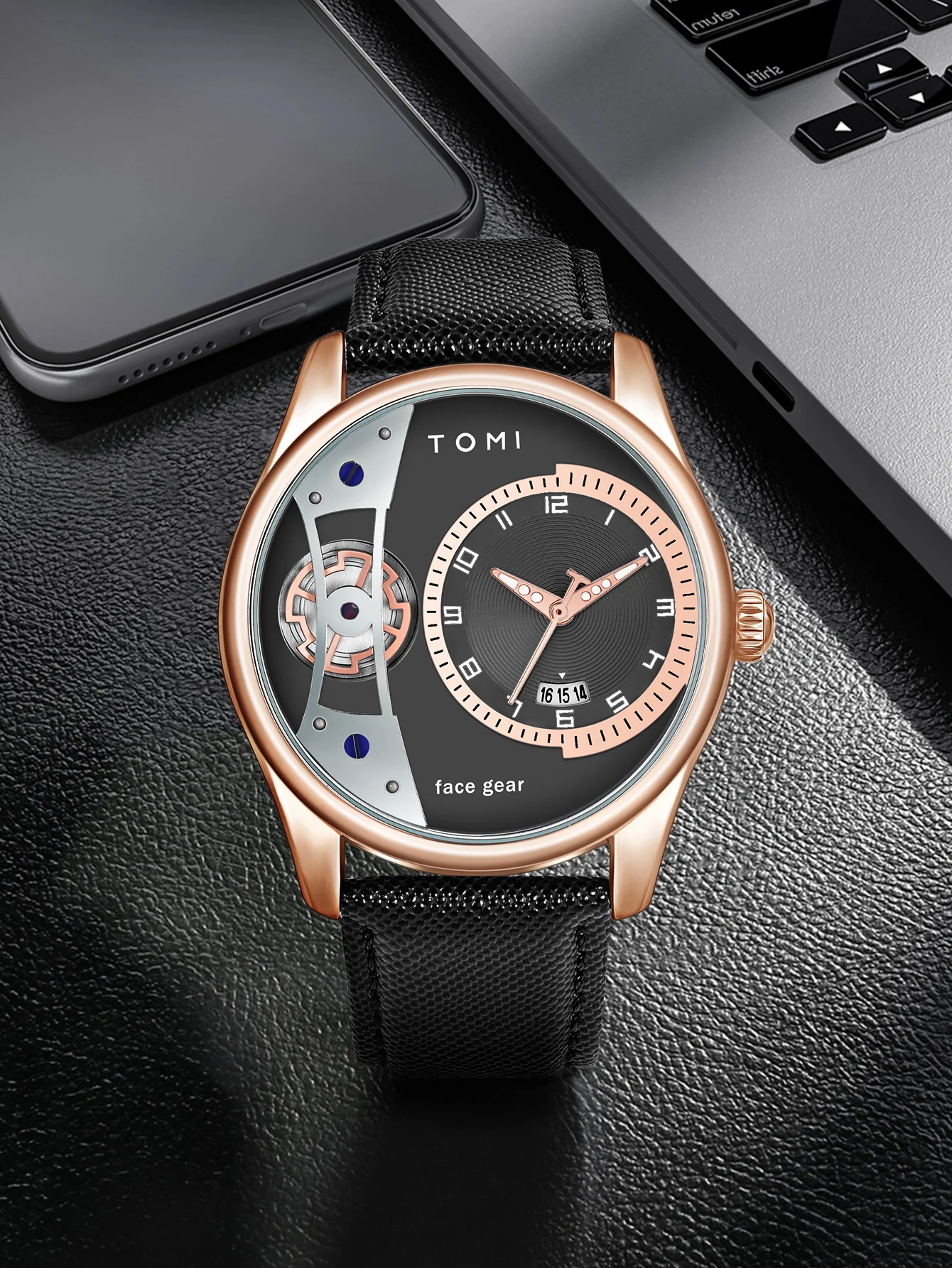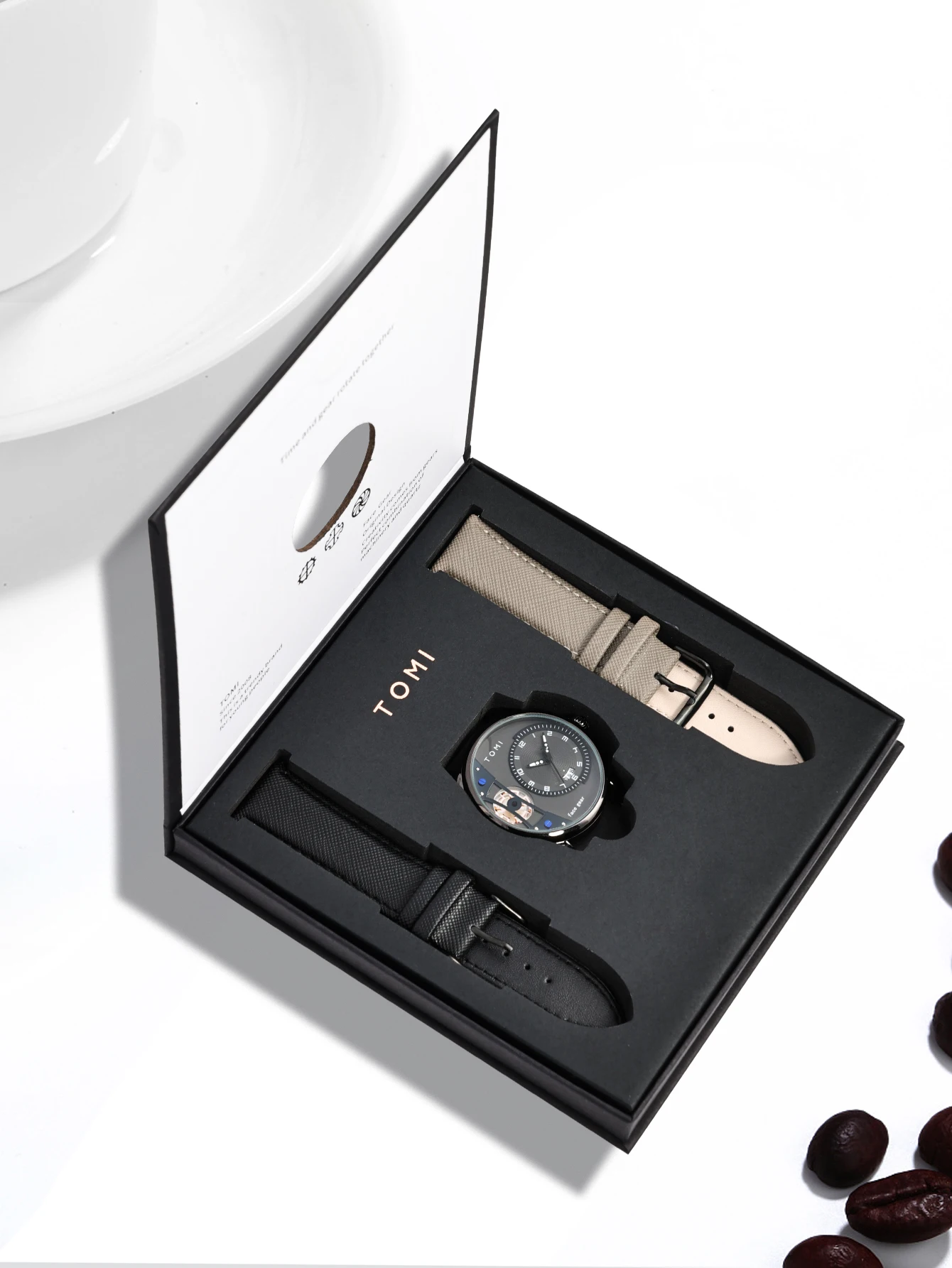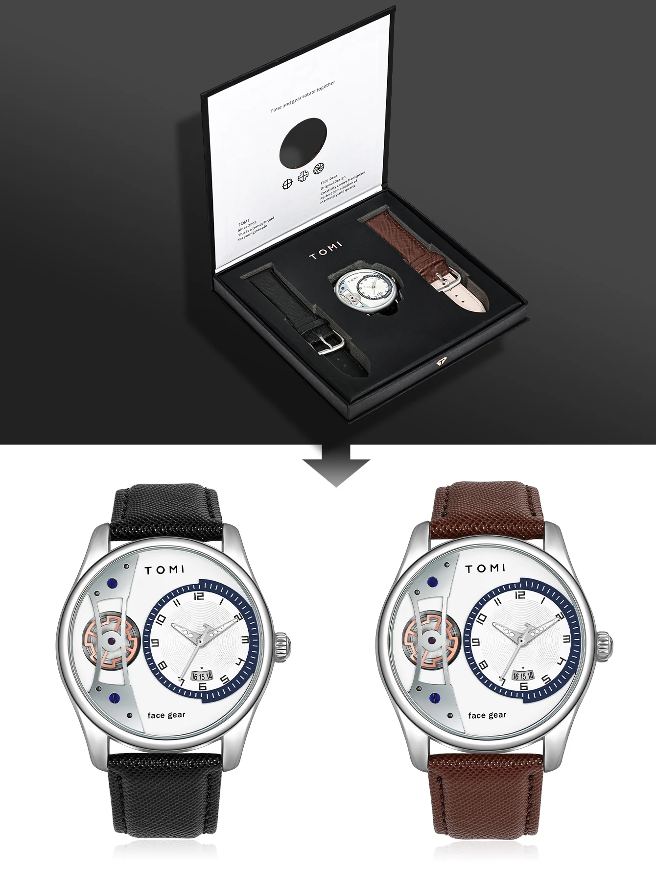 TOMI Set Gift Box for Men's Minimalist Business Quartz Watch Luxury Versatile Double Strap Detachable Watch Festival Gift