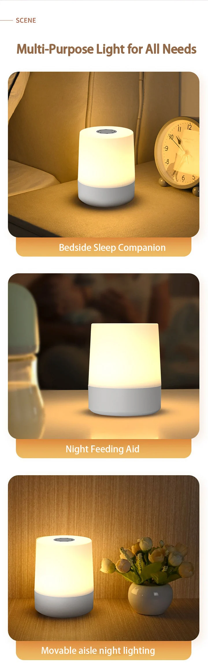 Touch Night Lamp USB LED Lamp Touch Control Switch Rechargeable Three Colors Lights Bedroom Portable Table Bedside Night Lamp