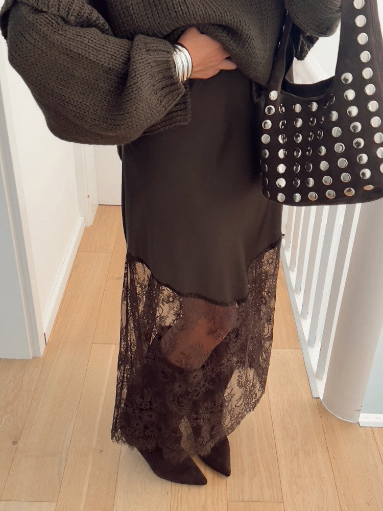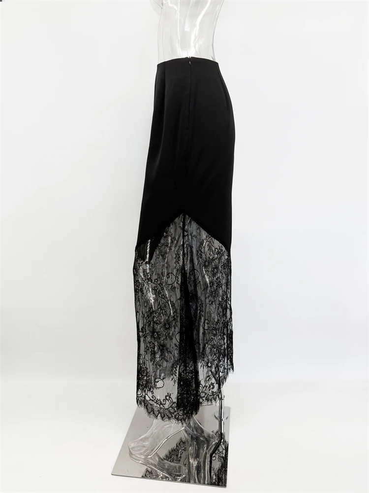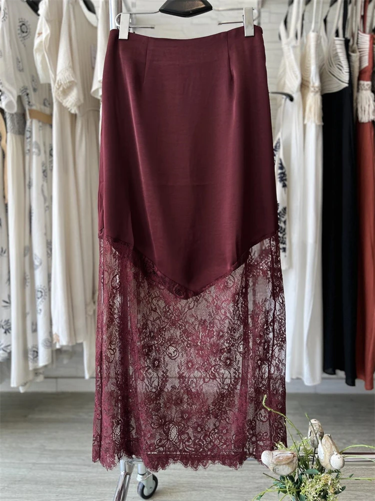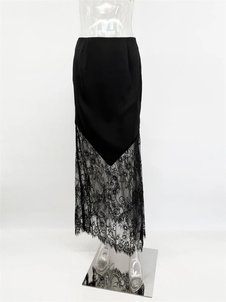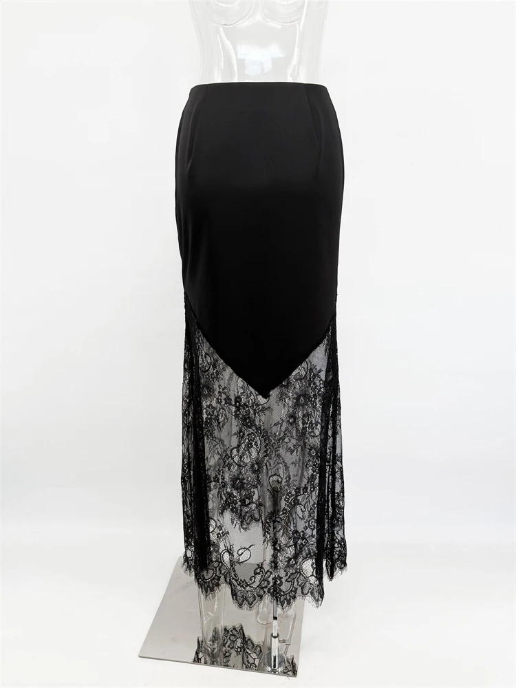Trendix Women Patchwork Lace Skirts 2025 New High Waist Slim Hollow Out Maxi Skirts Autumn Brown Fashion Party Club Boho Skirt