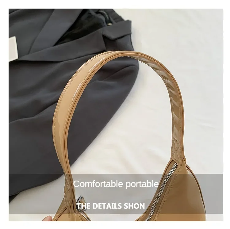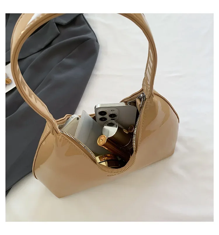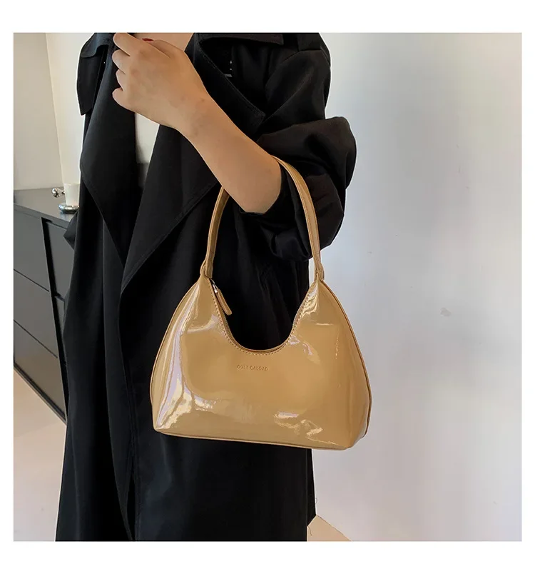 Trendy Designer Solid Shoulder Bags for Women Handbags and Purses 2024 New Fashion Patent Leather Underarm Ladies Tote Bags