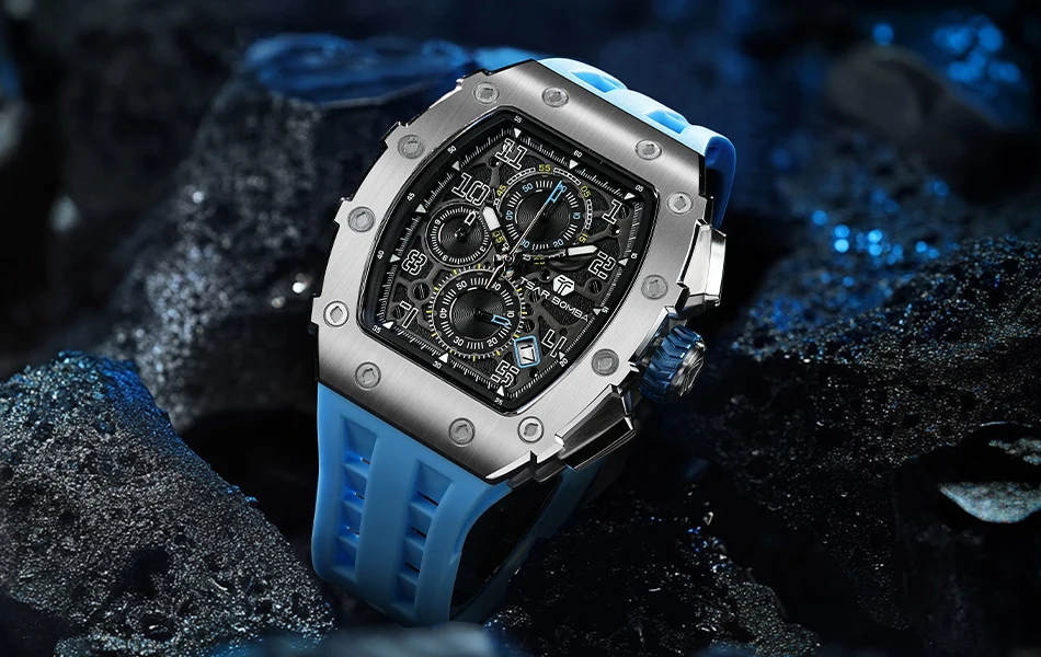 TSAR BOMBA Watch for Men Luxury Brand Tonneau Design Waterproof Clock Stainless Steel Wristwatch Fashion Rectangle Mens Watch