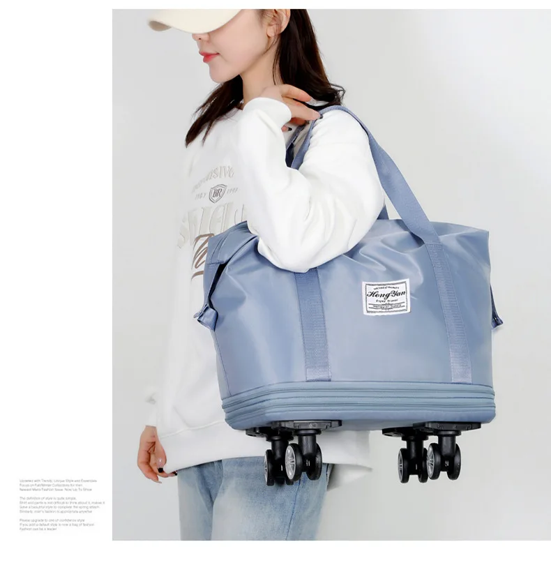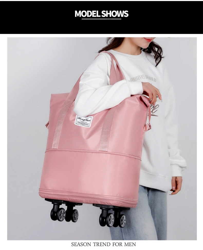 Universal Wheel Expandable Luggage Large Capacity Lightweight Travel Fitness Bag with Dry And Wet Separation Storage