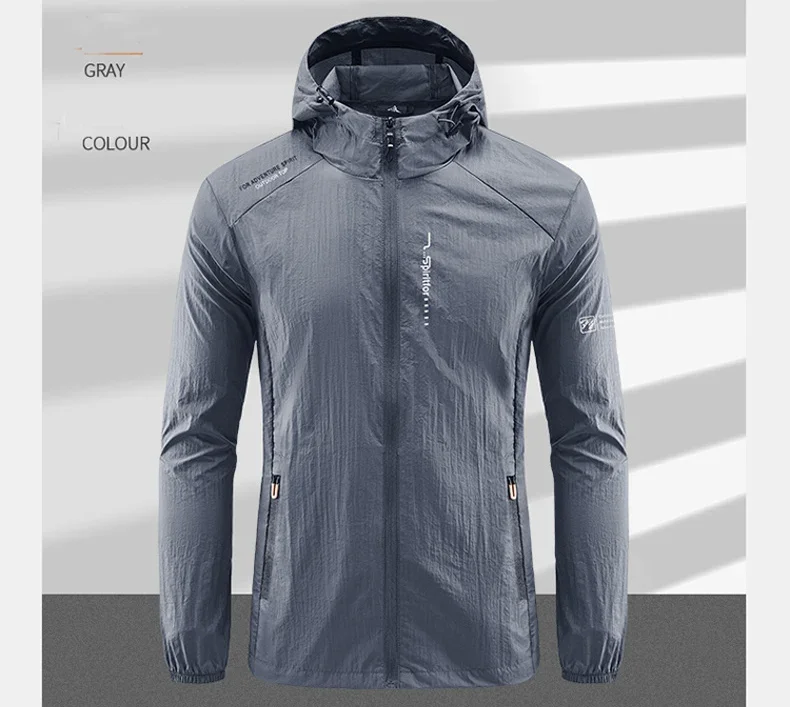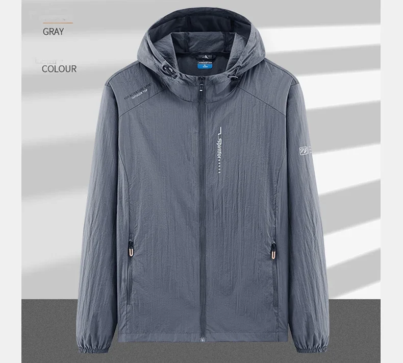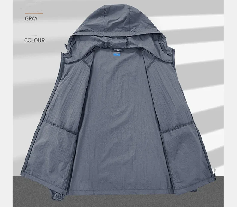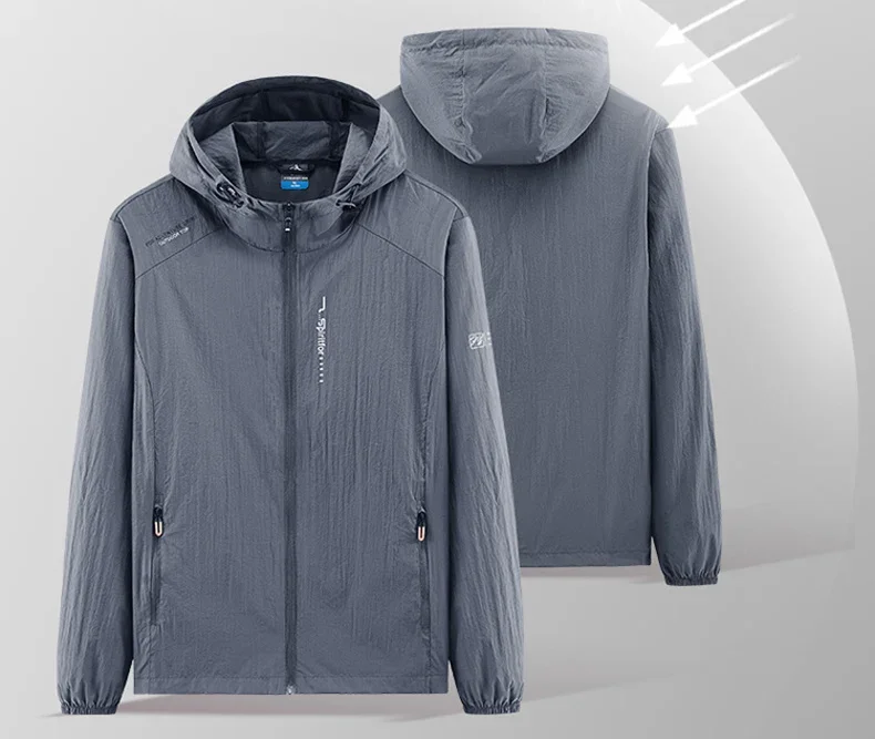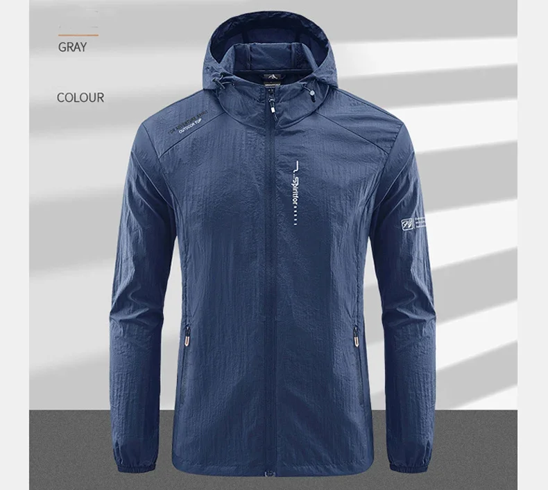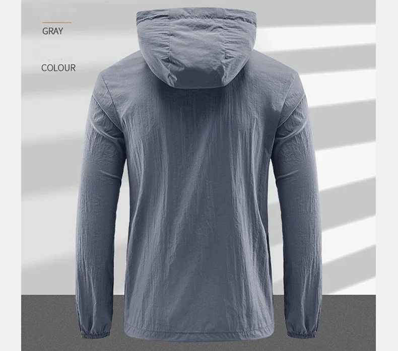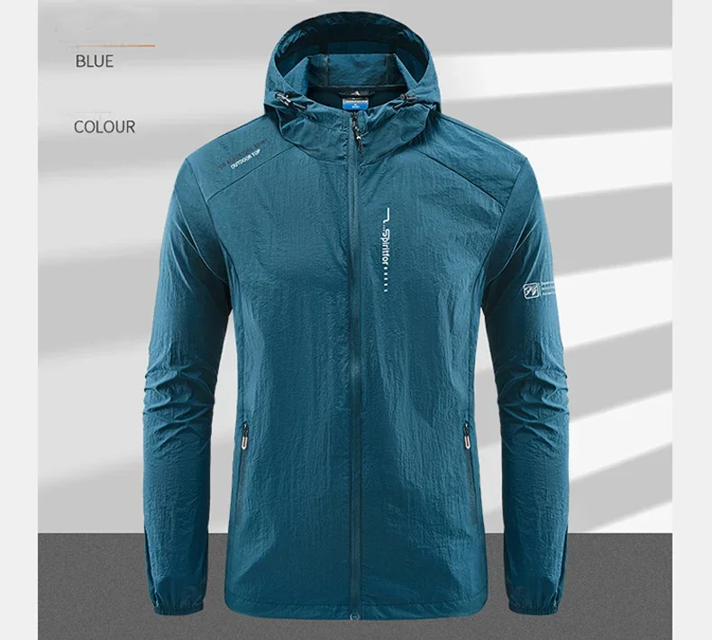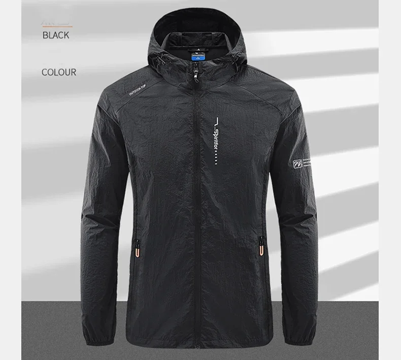 UPF50+ Summer Outdoor Quick Dry Sun-Protective Thin Jacket Men Hiking Fishing Cycling Hooded Gym Sport Ultra Light Windbreaker