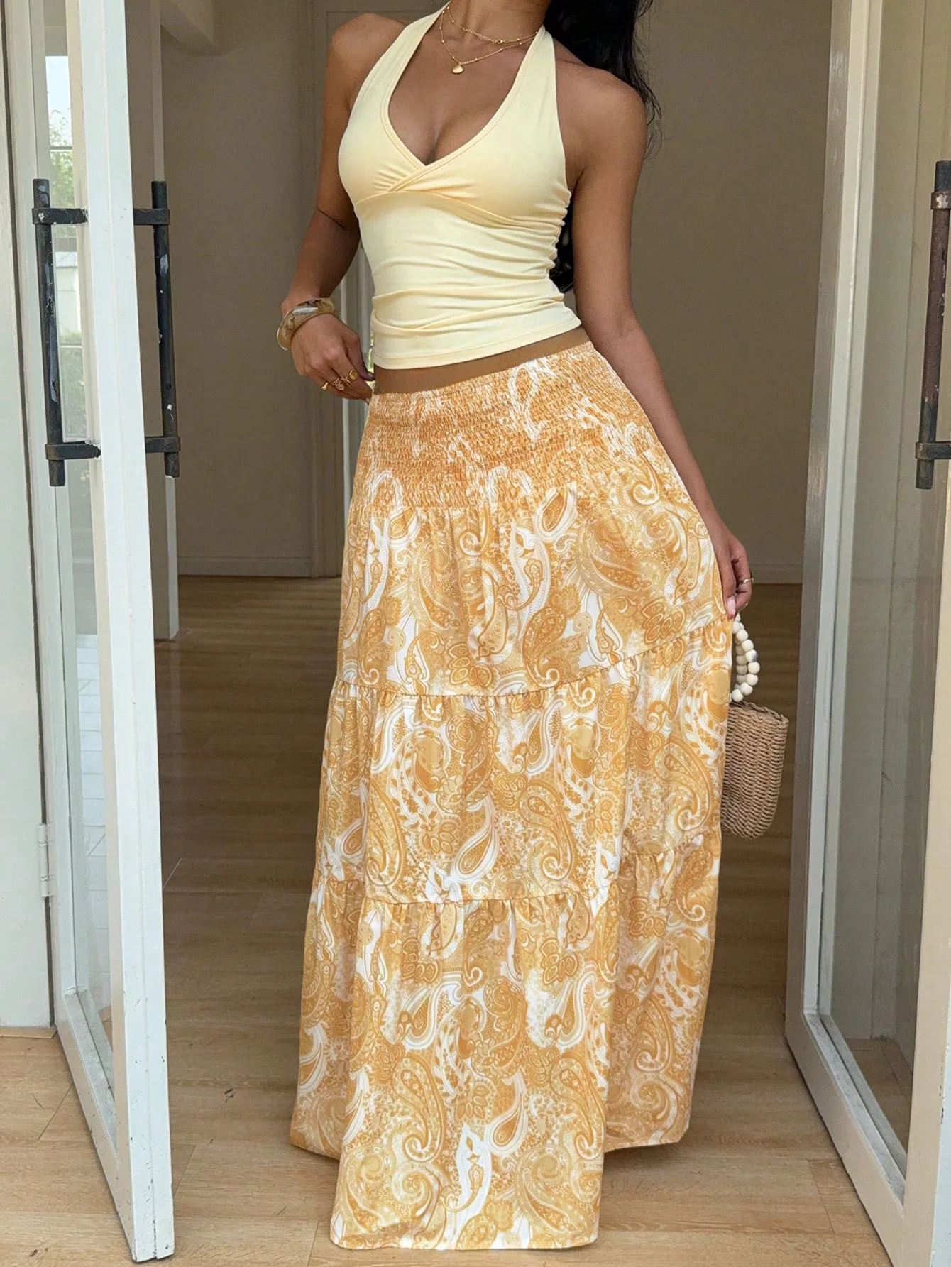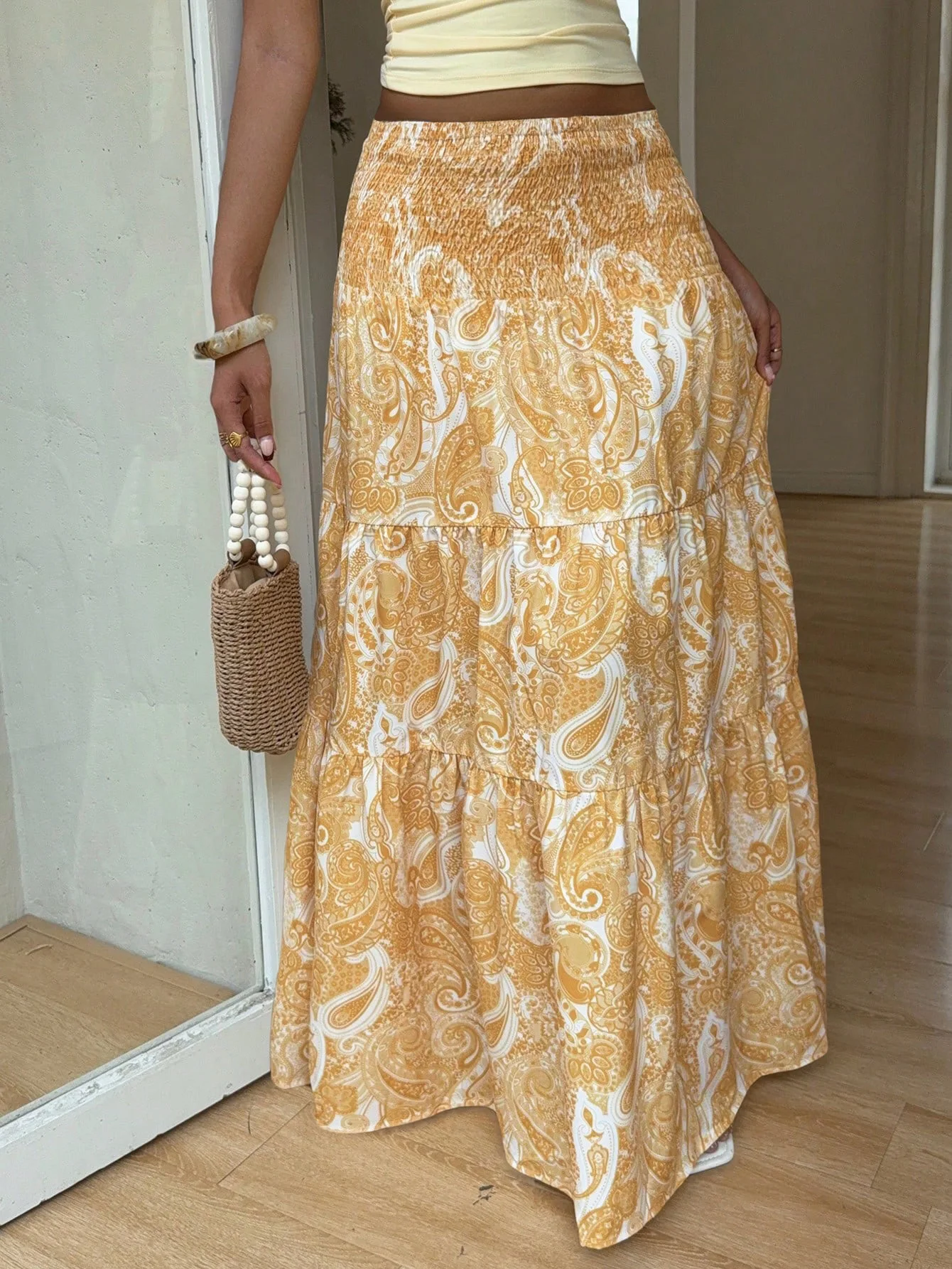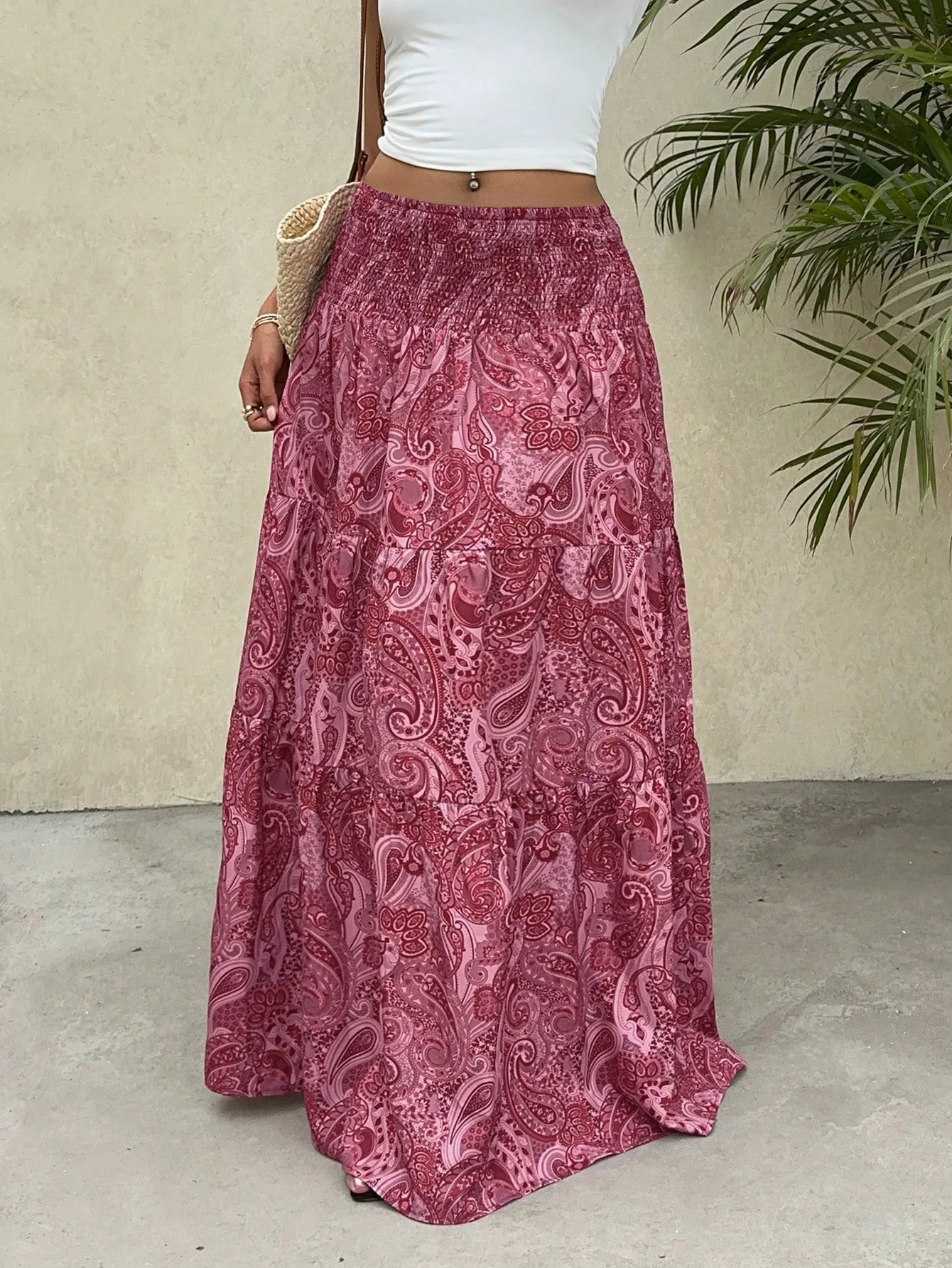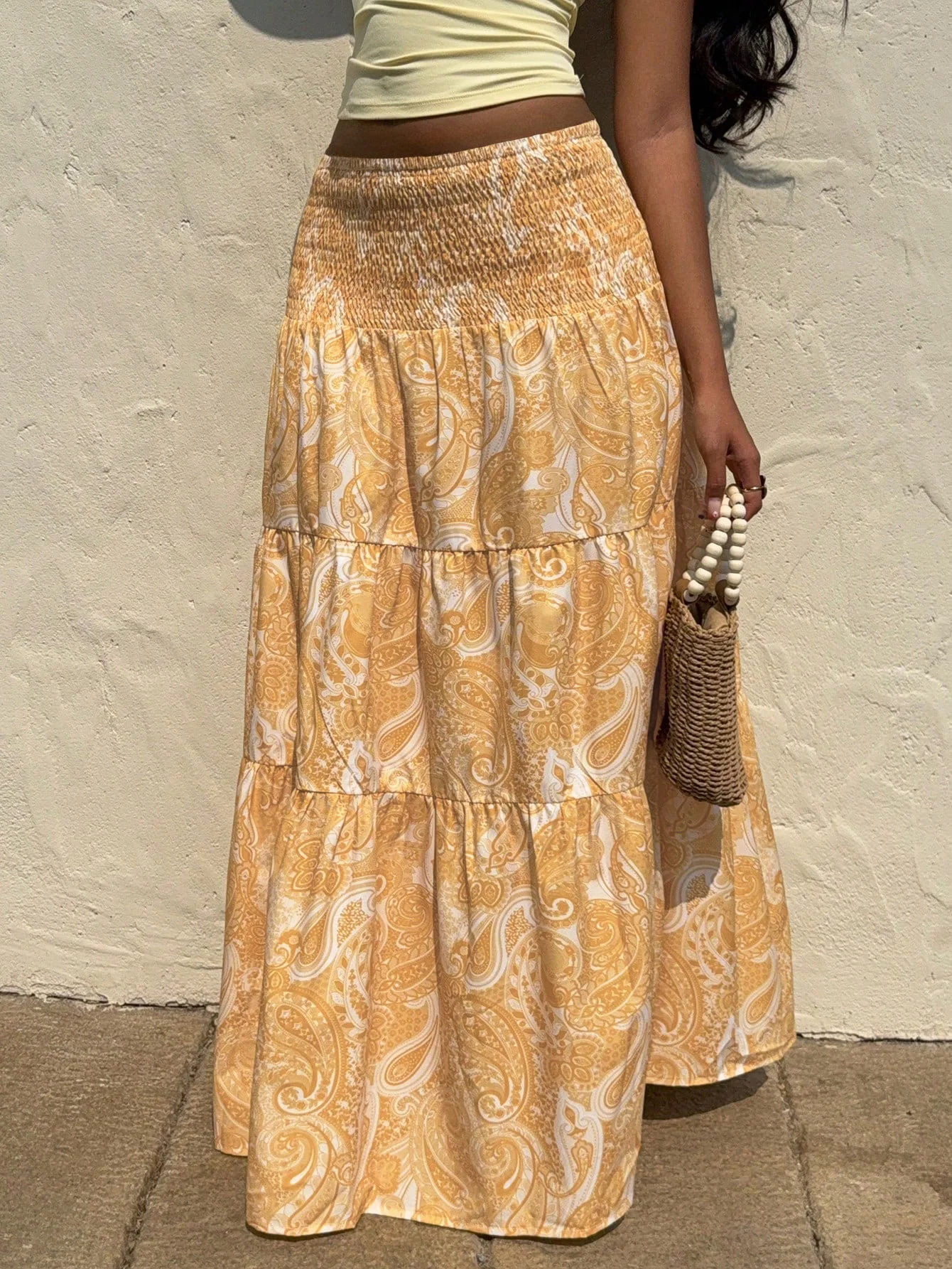 Vacation Style Stretchy Waist Long Maxi Skirt - Flowy Beach Skirt with Elastic Waistband