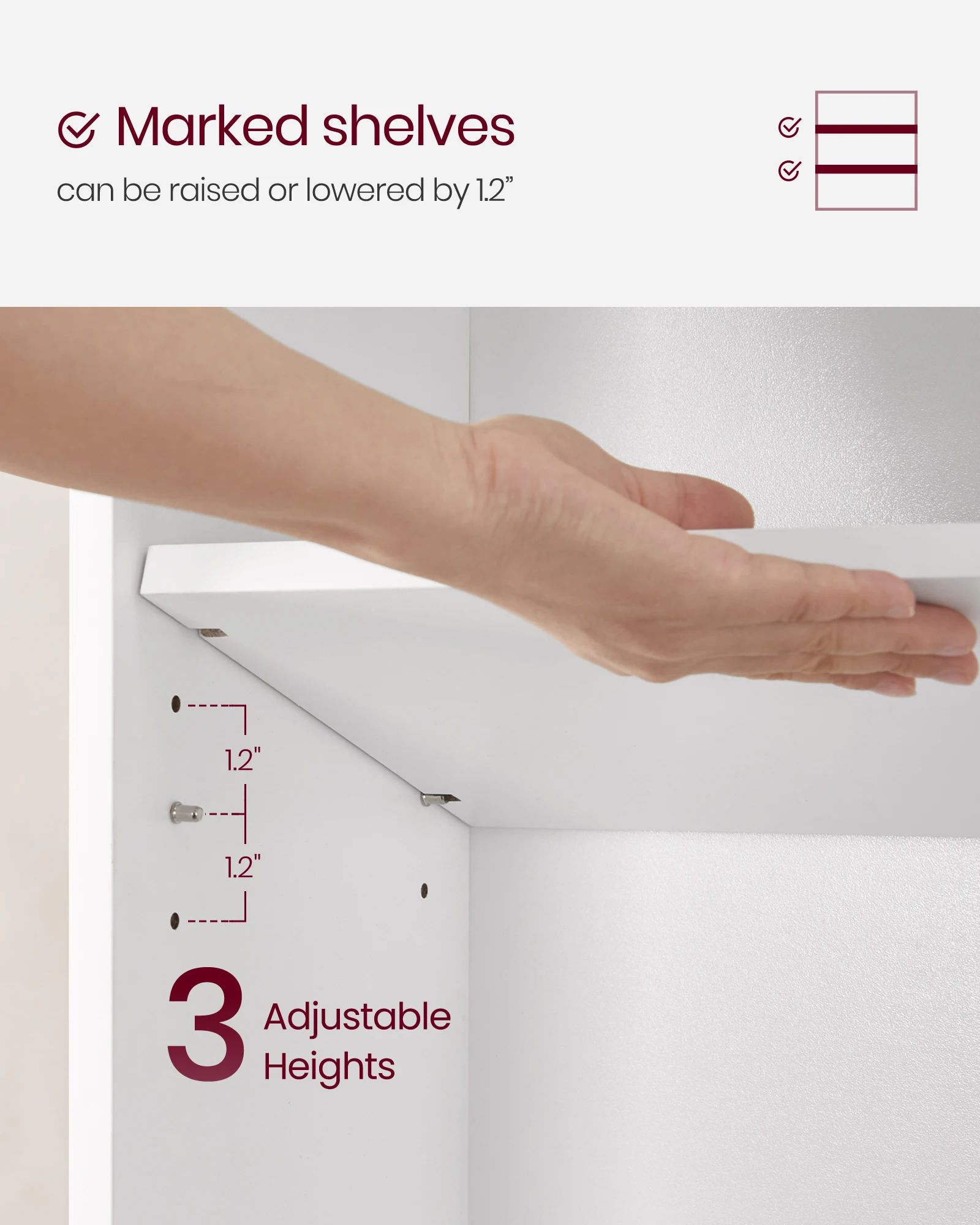?SPACE-SAVING & ADJUSTABLE?This 3-tier bookcase, measuring 9.4"D x 23.6"W x 32"H, optimizes vertical space. The 2nd and 3rd tiers are adjustable to 3 heights (up or down 1.2"), easily accommodating tall books, artwork, or storage boxes