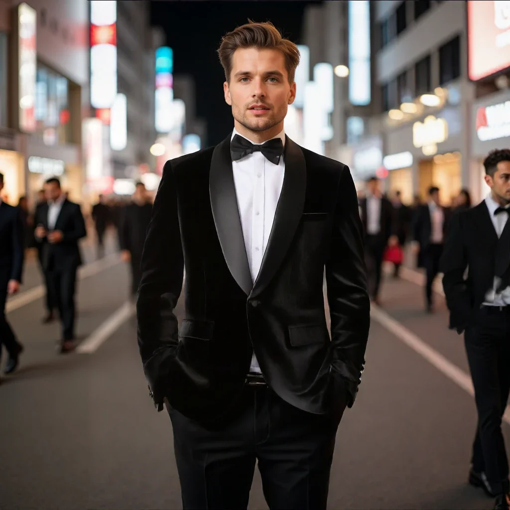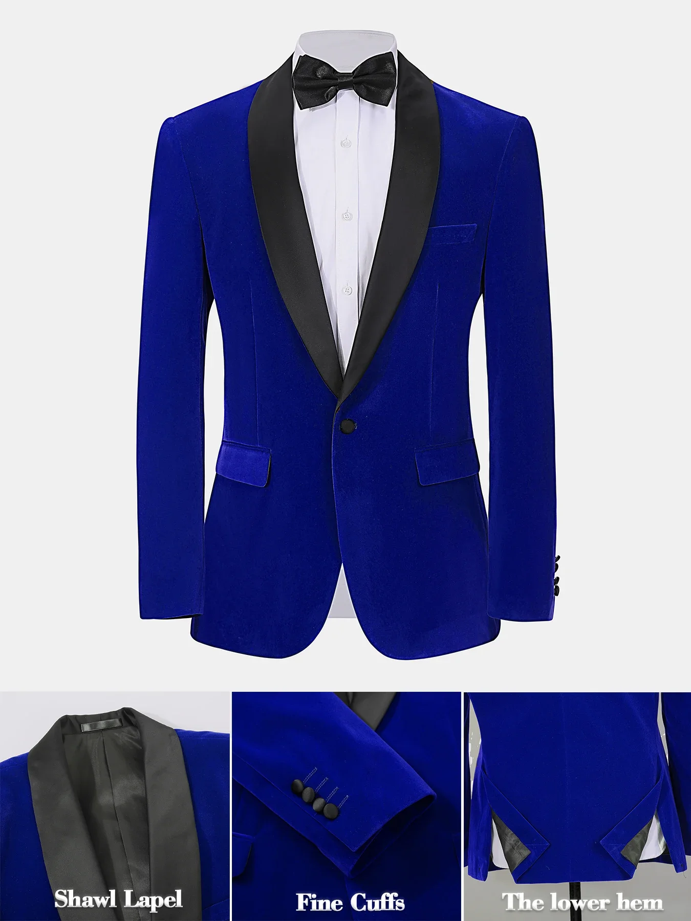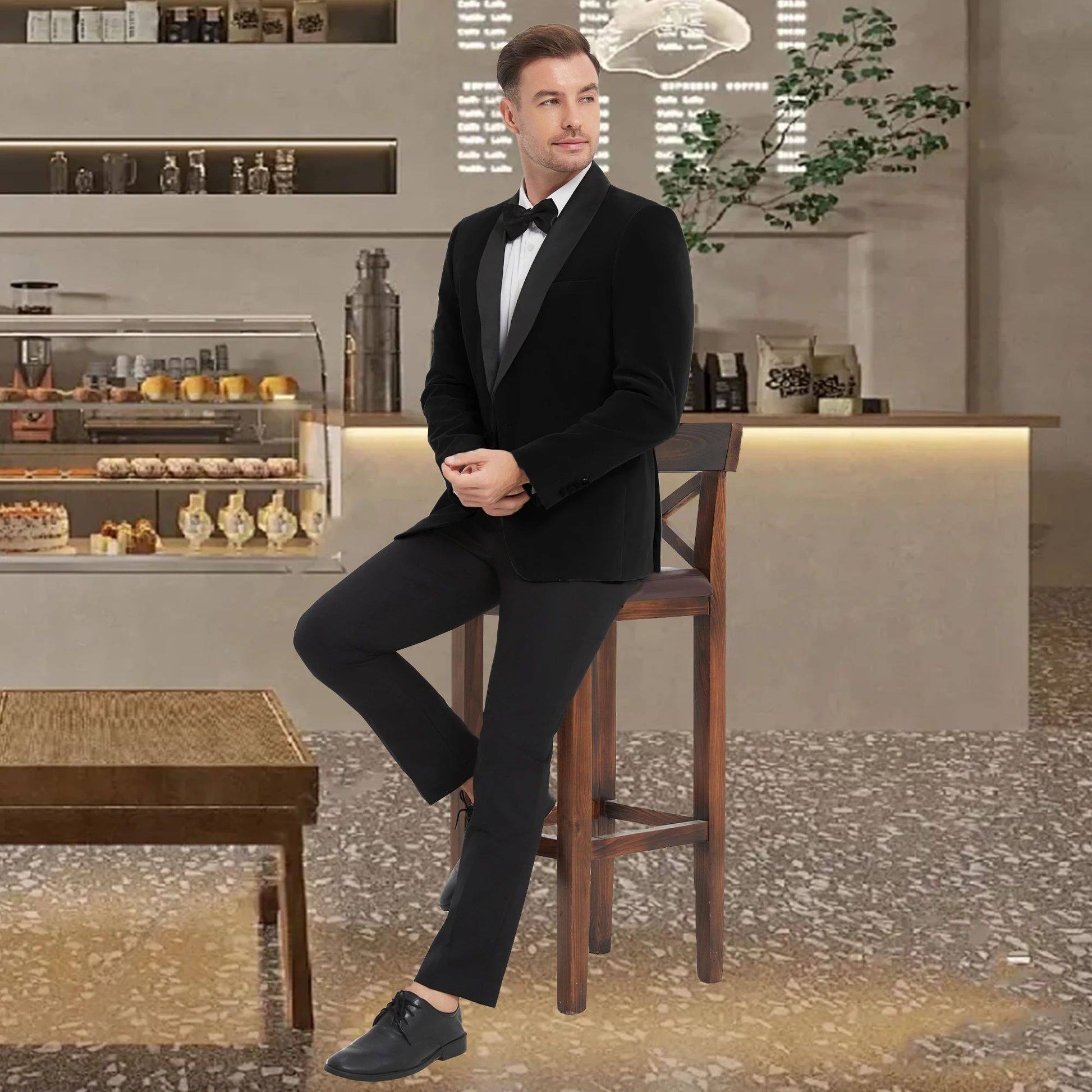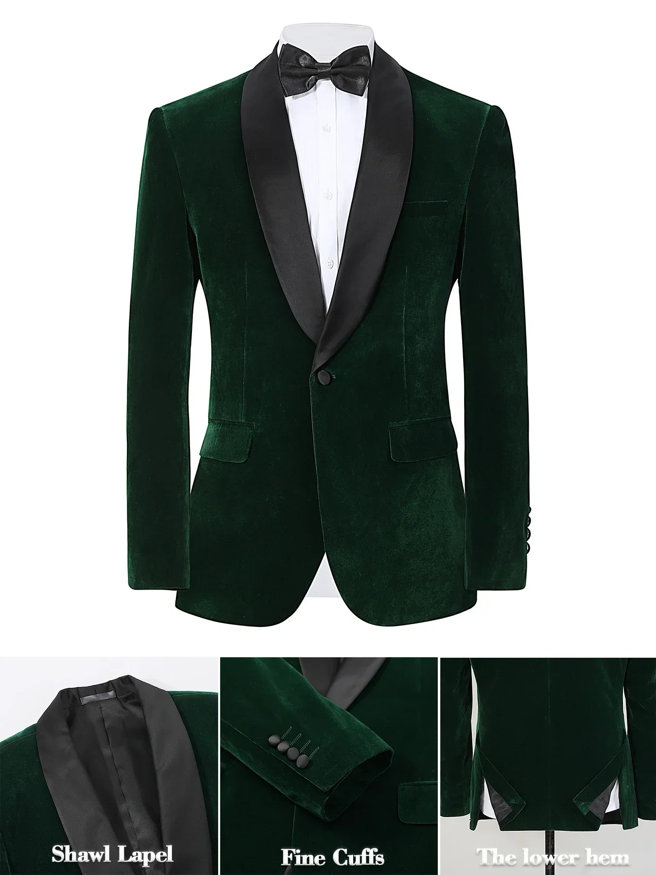 ?Velvet Elegance?Men's Single-Breasted Blazer | Long Sleeve Formal Jacket for Weddings, Business & Events