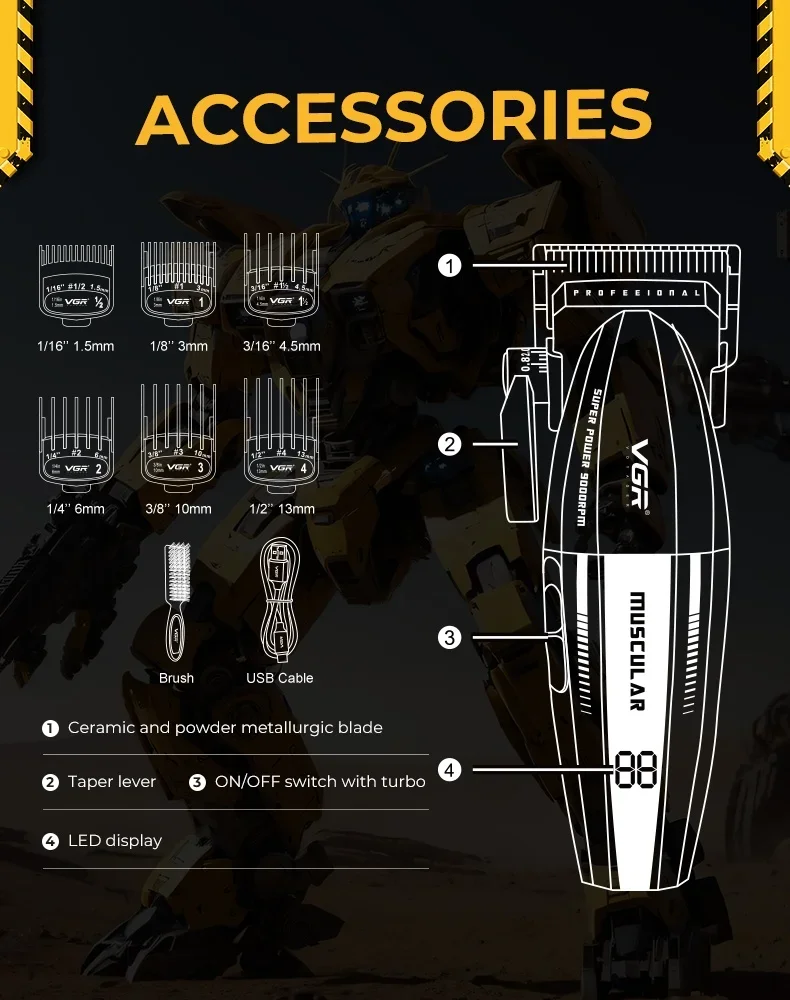 Featuring an LED display screen, the V-285 provides clear and convenient visual information. You can easily monitor settings and battery life, making it easier to manage your grooming routine.