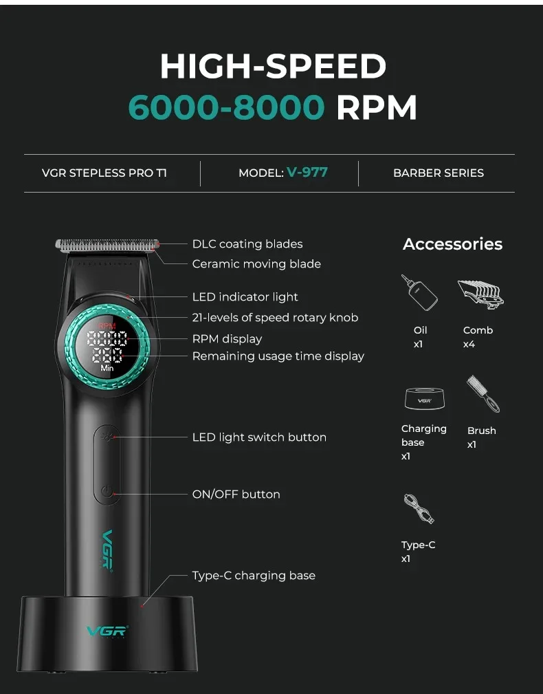 ??? Este es el auténtico juego de cortapelos de la marca VGR, que tiene gran potencia, apariencia excepcional, diseño seguro y confiable, experiencia de uso cómoda, rendimiento de costos extremos y tiene alta popularidad y excelente reputación en todo el mundo.Es VGR V-977 V-377