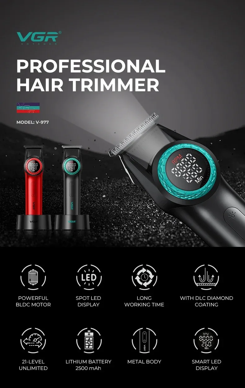 VGR Hair Trimmers Professional Hair Clippers Electric Hair Clippers 0MM Trimmer Reciprocating Mens Beard Trimmers V-977 V-377