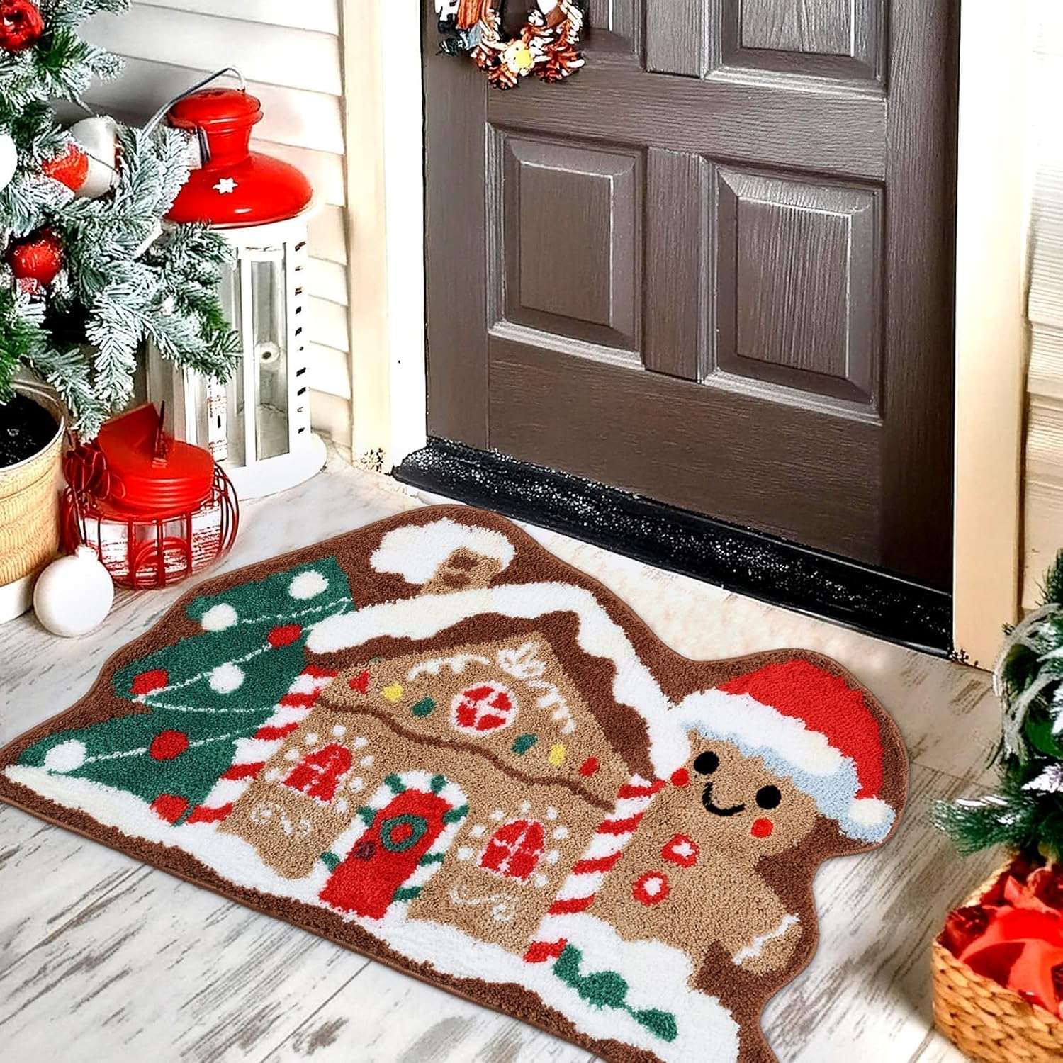 VIAMA Christmas Gingerbread House Rug Soft Bathroom Mat Gingerbread Figure Front Door Living Room Holiday Decorations
