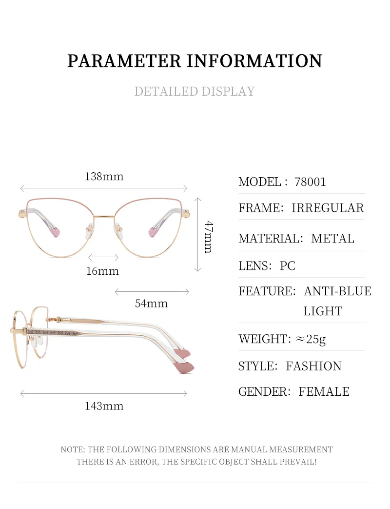 VICKY New Personalized Simple Cat's Eye Fashion Design Women's Anti-Blue Light Reading Glasses Customizable Prescription 78001