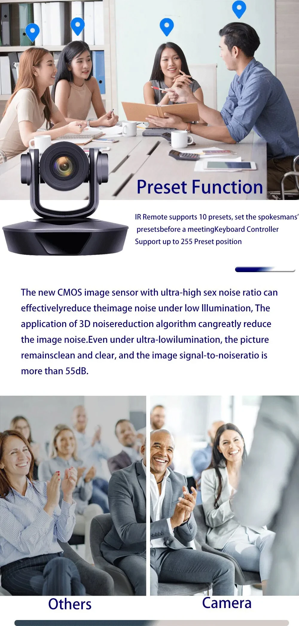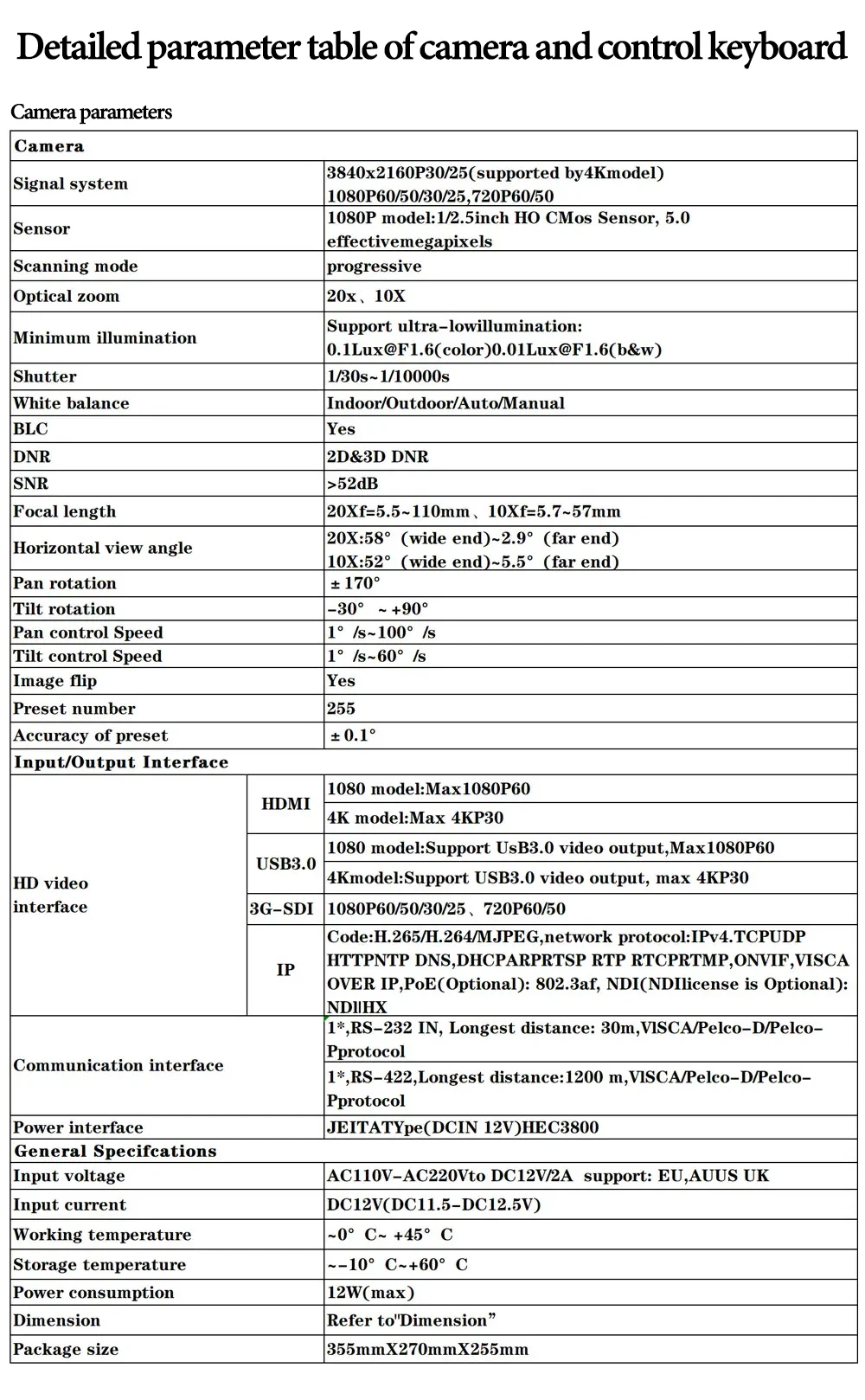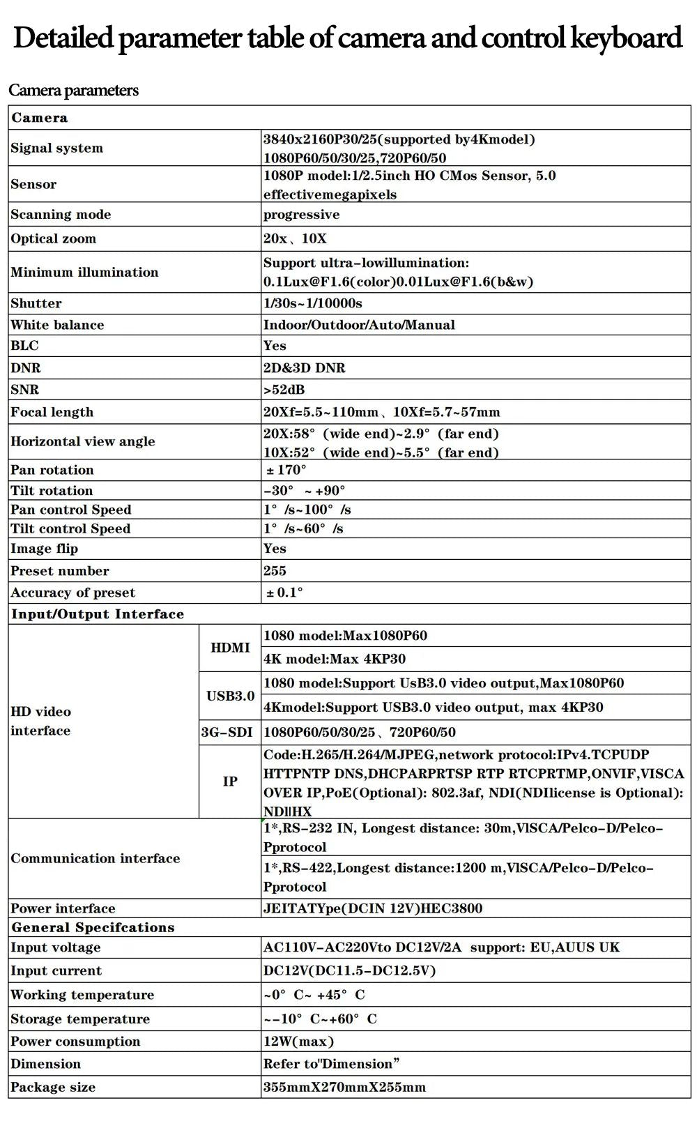 This 4K ultra-high-definition pan-tilt-zoom (PTZ) camera is designed to meet diverse professional and personal visual communication needs. It features a 1/-inch CMOS high-quality image sensor, capable of outputting stunning 4K ultra-high-definition videos in a 16:9 aspect ratio. The camera not only delivers high-definition visuals swiftly but also ensures silent and smooth pan/tilt operations, minimizing jitter even when capturing objects across a broad range. It finds extensive applications in scenarios such as video calls, video conferences, online courses, church live broadcasts, university lectures, telemedicine, remote training, remote interviews, distance education, and live event streaming.