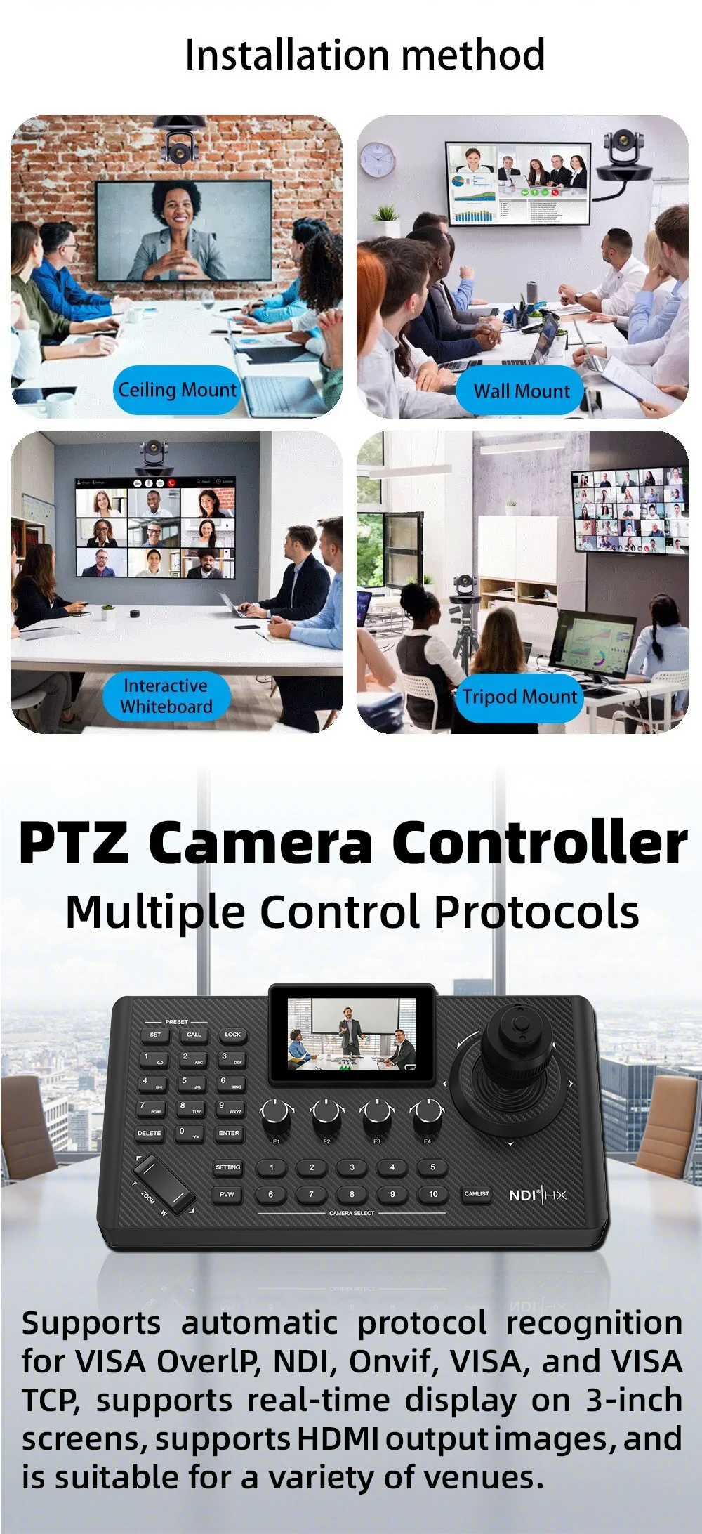 Video Conference Camera Kit 4K PTZ Camera 20X Zoom NDI SDI HDMI IP USB Church live broadcast NDI PTZ camera Controller 1-8pcs