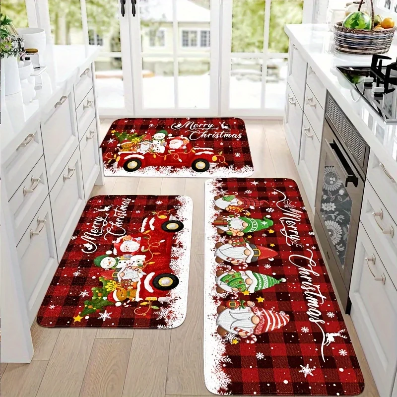 VIKAMA Christmas Kitchen Mats Santa Gnome Mat Truck Mat Snowflake Home Decor Floor Mat Flannel Rug For Hallway, Bedroom, Living