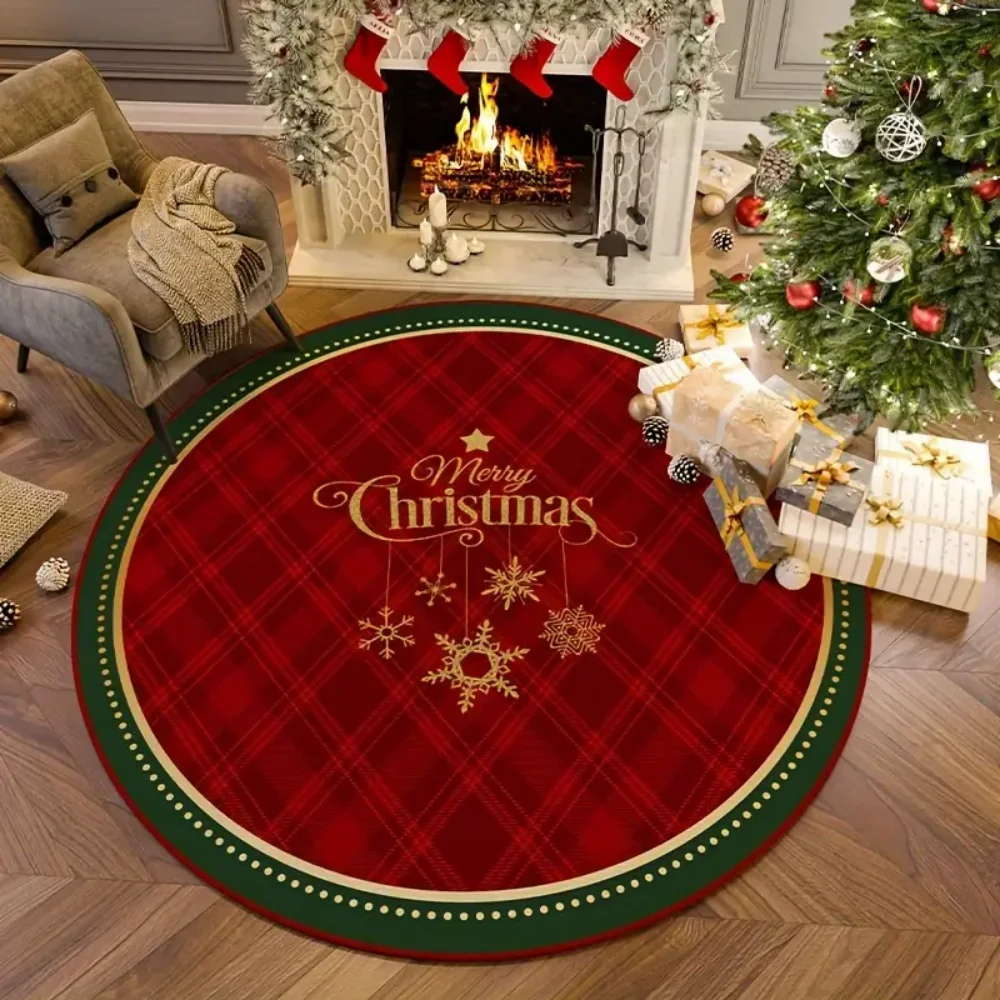 VIKAMA Christmas Snowflake Anti-Slip Washable Rug - Essential Round Floor Mat for Home Room Deco