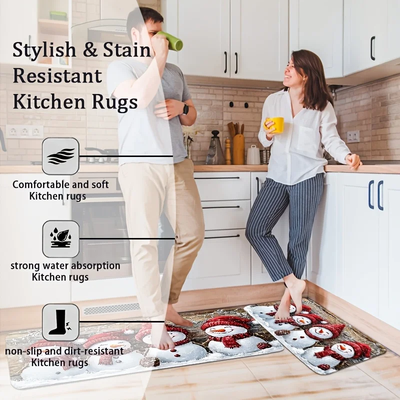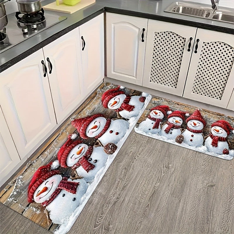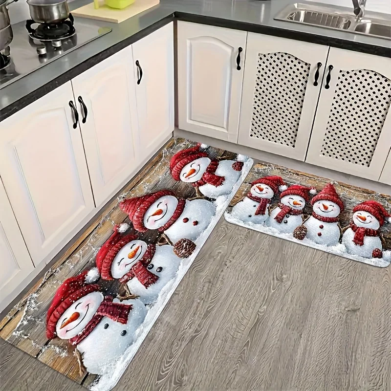 VIKAMA Festive Christmas Kitchen Mats Cartoon Snowman Area Rug Christmas Holiday Atmosphere Decor Welcome Doormat Home Decor
