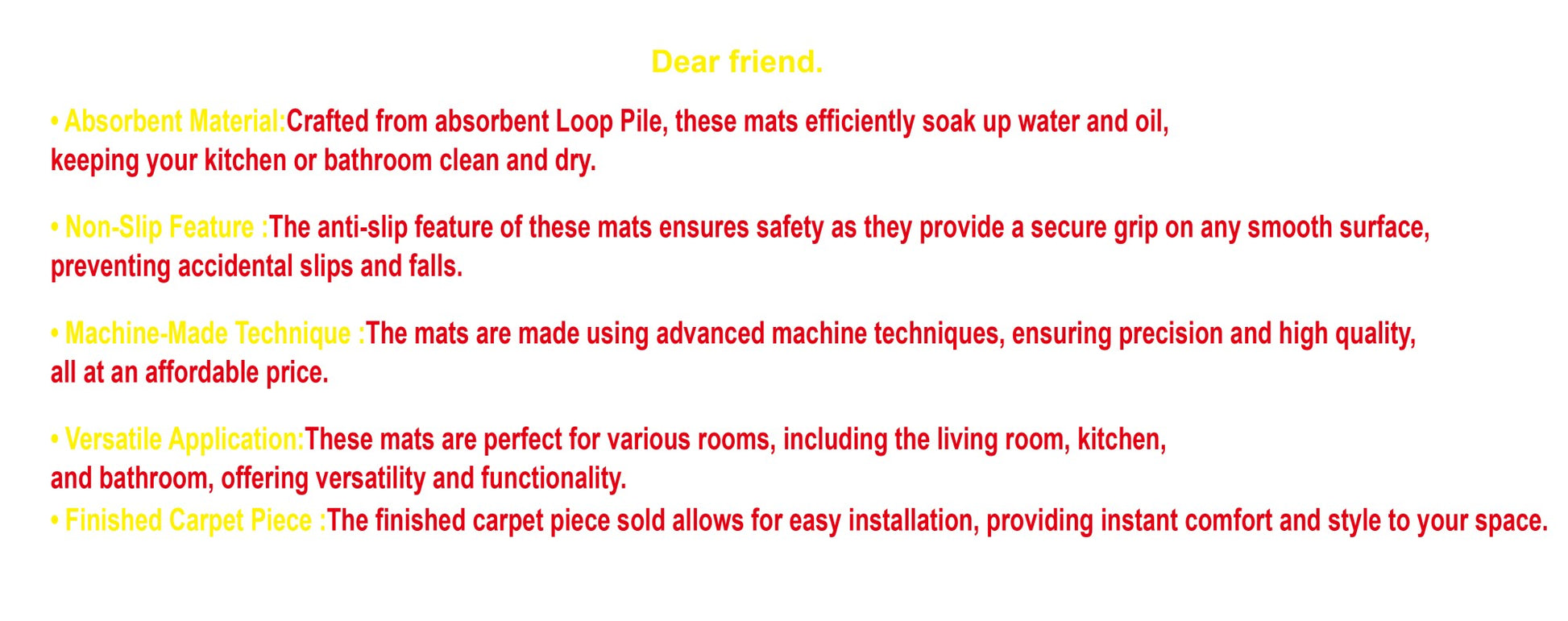 Product Characteristics: washable dirt repellent non-slip lint-free Machine washable