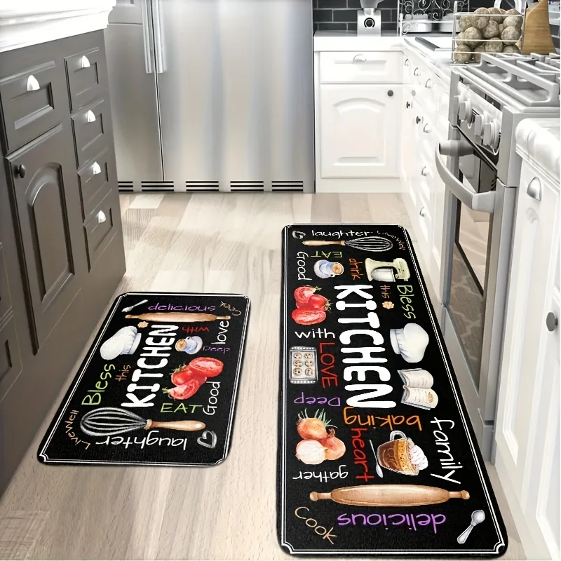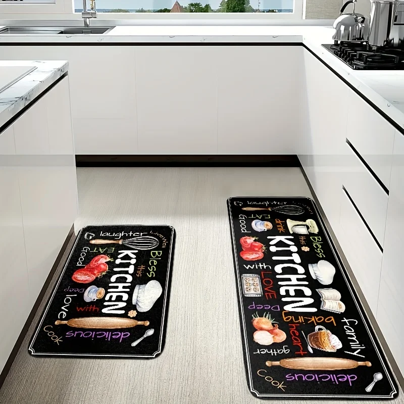 VIKAMA Kitchen, Laundry Room Floor Mats, Bathroom New Flannel Water-Resistant Soft Rug Dust-proof Toilet Treads Home Decorations