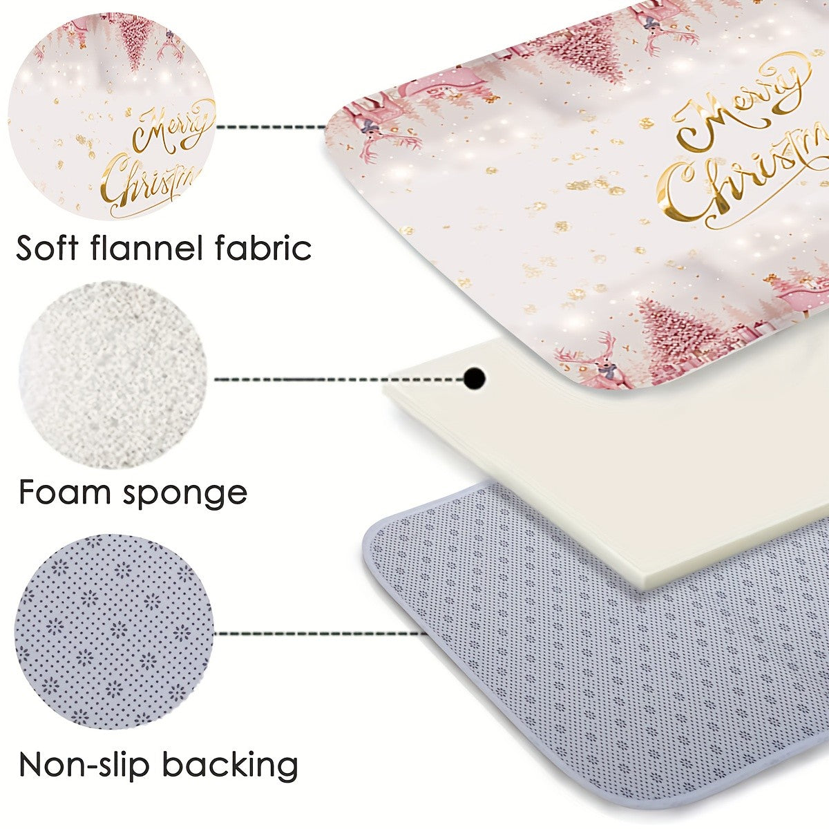 VIKAMA Pink Minimalist Christmas-themed Rug Bedroom, Living Room, Hallway Entrance Mat Soft Comfortable Floor Mat Home Decor