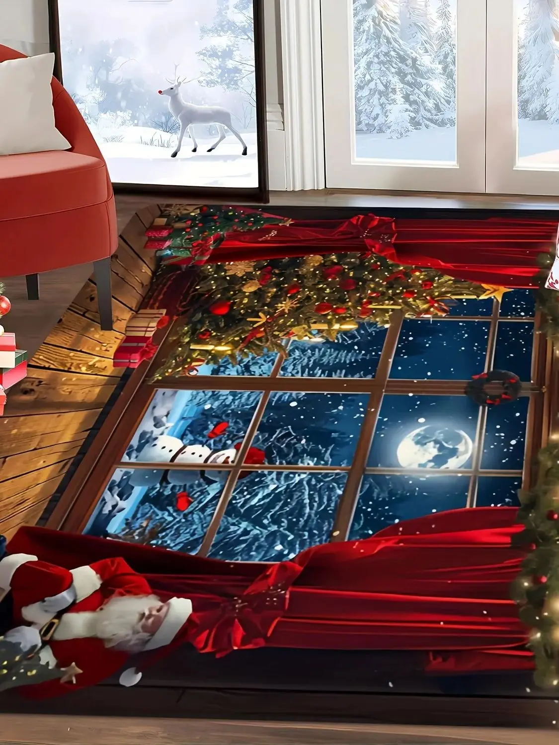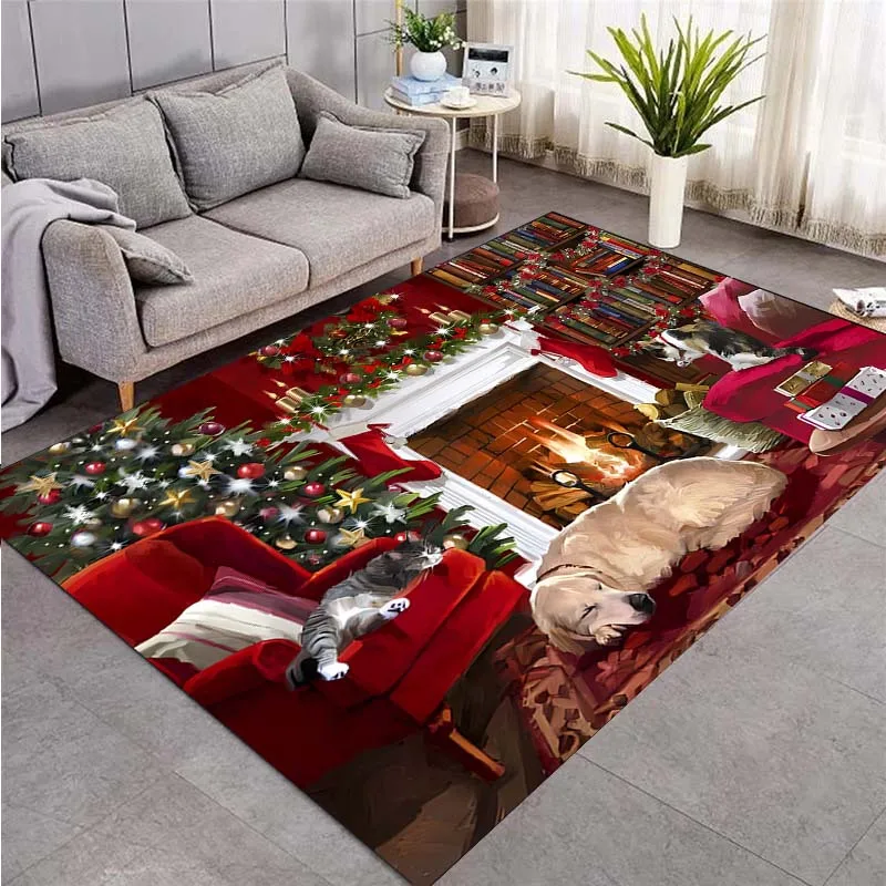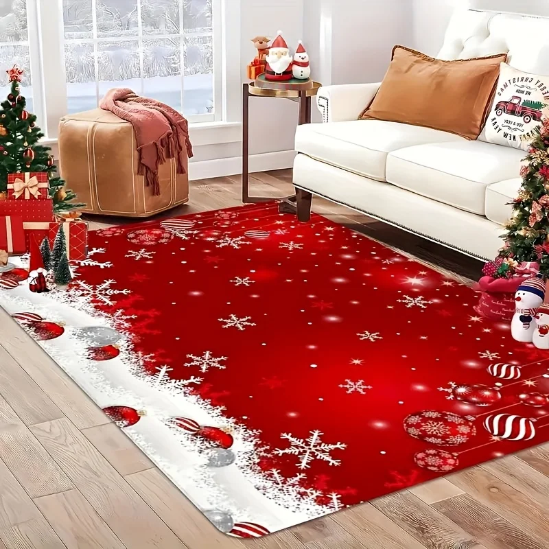 VIKAMA Red Festive Christmas Carpet Snowflake Bedroom Bedside Live Room Carpet Large Area Rugs for Living Room Home Decor