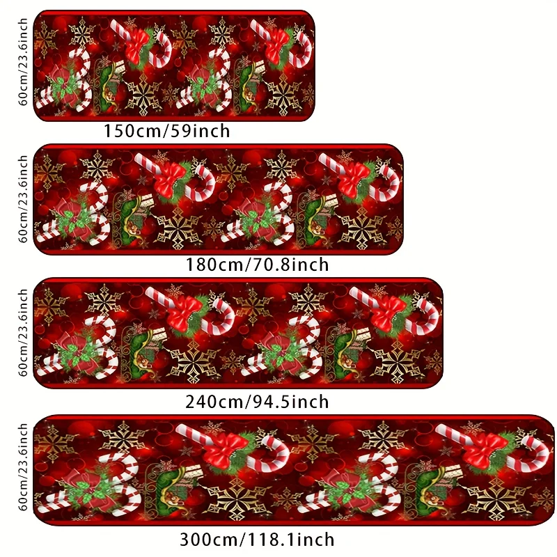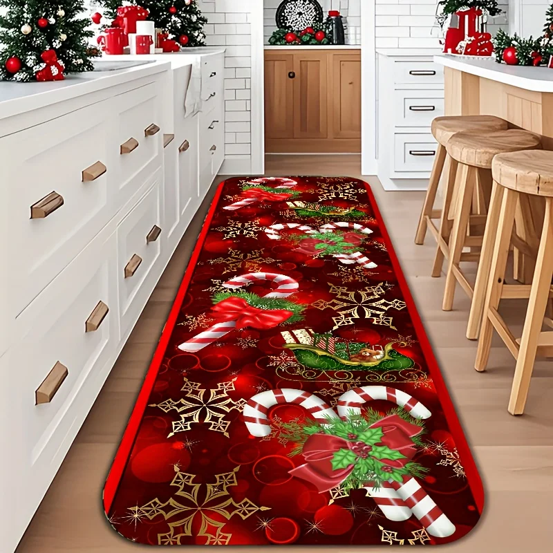 VIKAMA Red & Golden Christmas Runner Mat Kitchen Rugs Entryway Hallway Bedroom Carpet Welcom Floor Mat Laundry Floor Mat Home