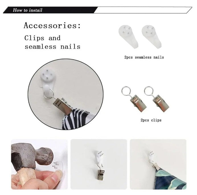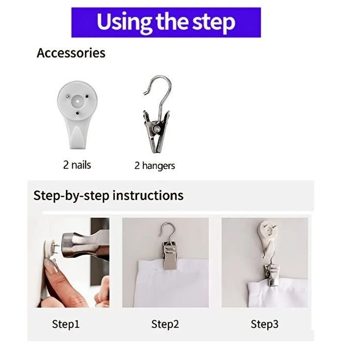4.ACCESSORIES: equipped with 2 barb clips and 2 non-mark nail hooks