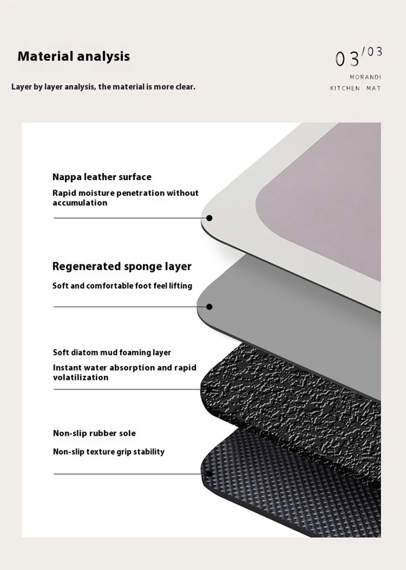 VIMAKA Minimalist Diatomite Bath Mat - Non-Slip Kitchen Floor Pad, Quick Dry Rug, Water & Stain Resistant, Eco-Friendly Design