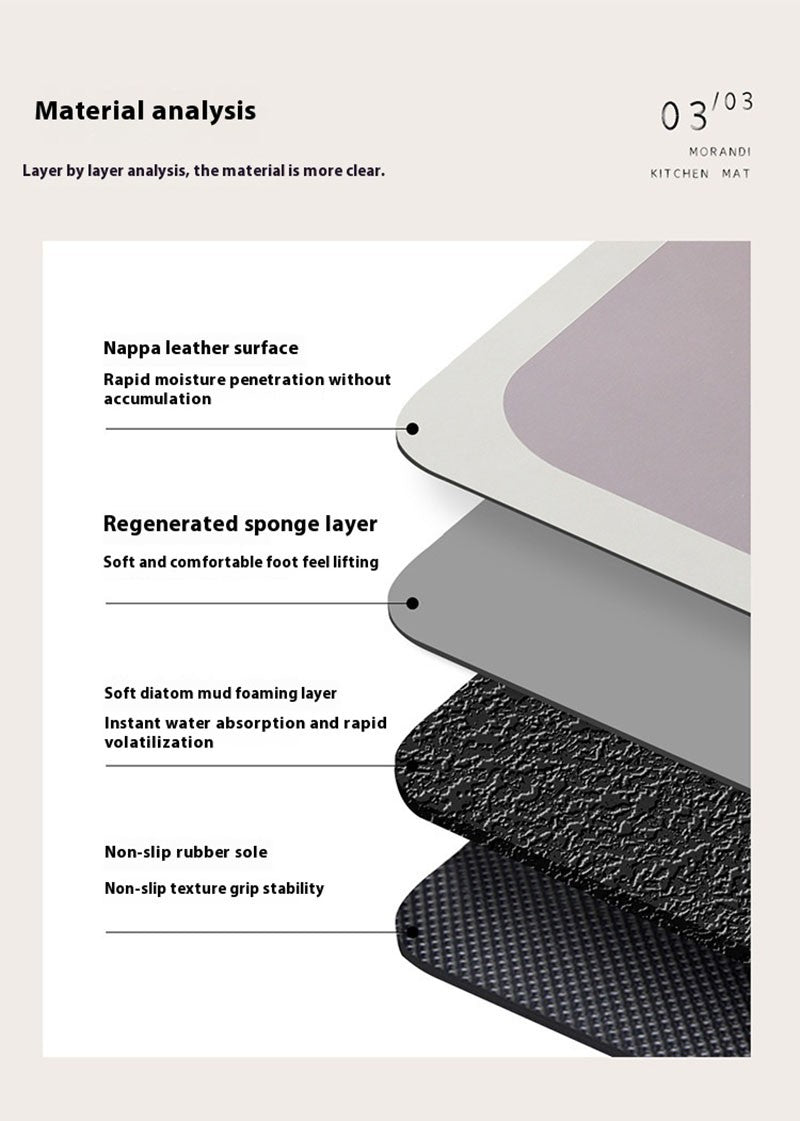 1. Material: The carpet is made of diatom mud. Soft and comfortable, skin friendly, environmental protection, moisture absorption.