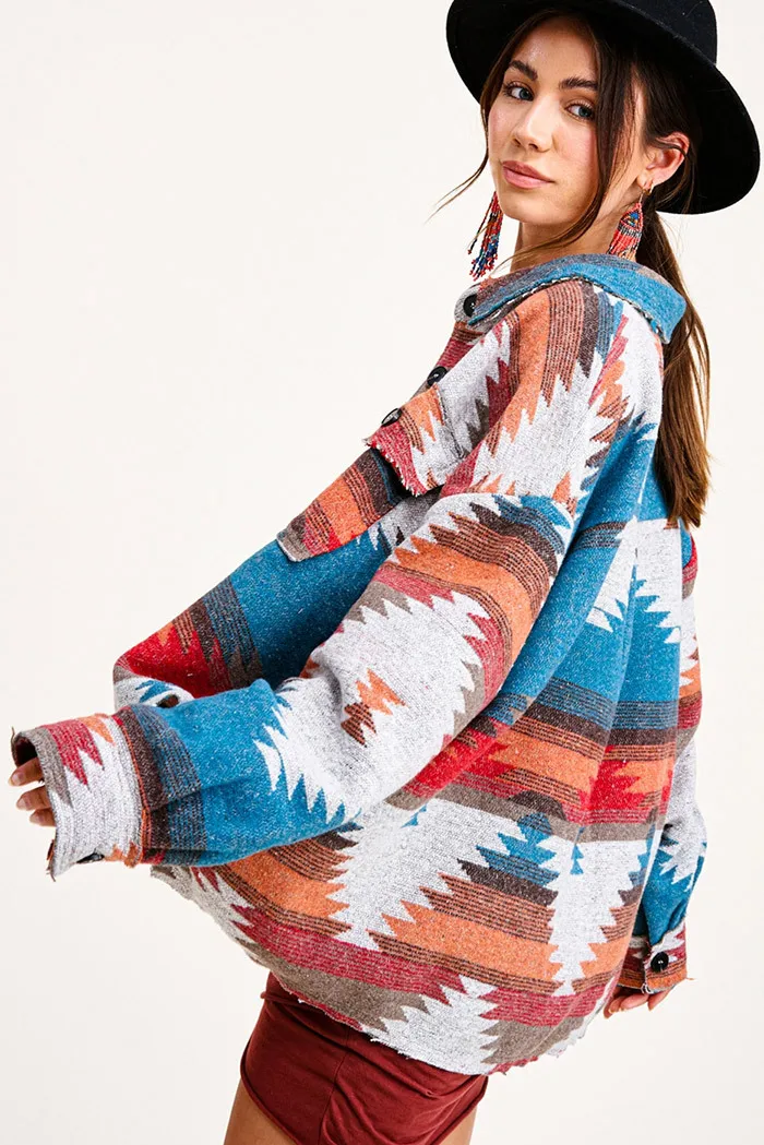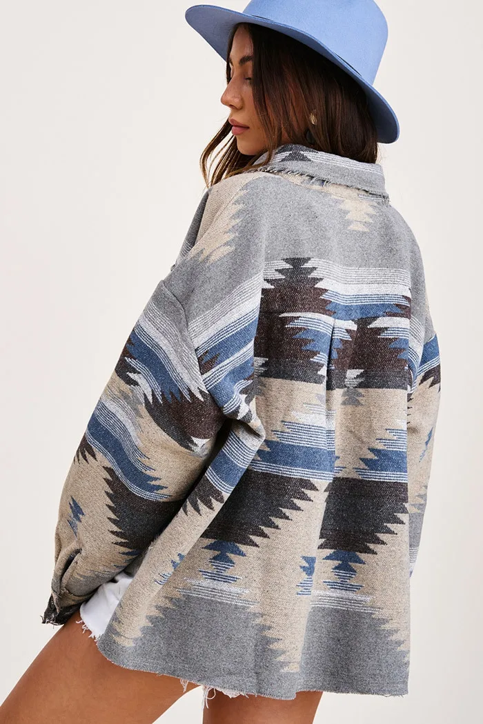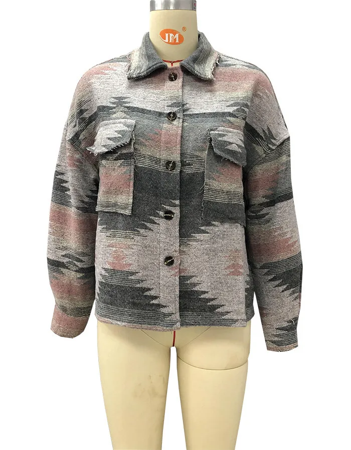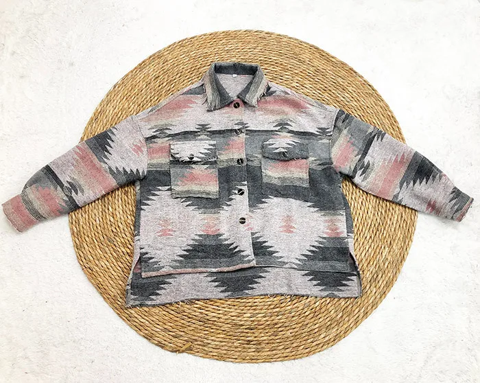 Vintage Jacket Women Splicing Loose Jacket Denim Print Aztec Retro Ethnic Style Long Sleeved Shirt Streetwear Female Goth Coat