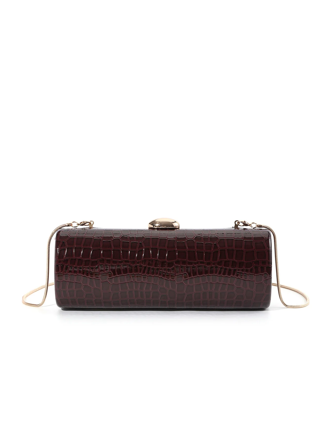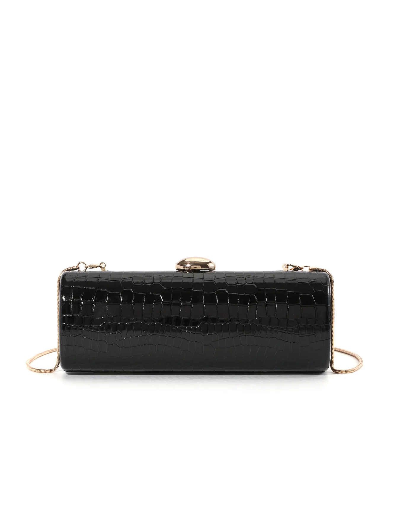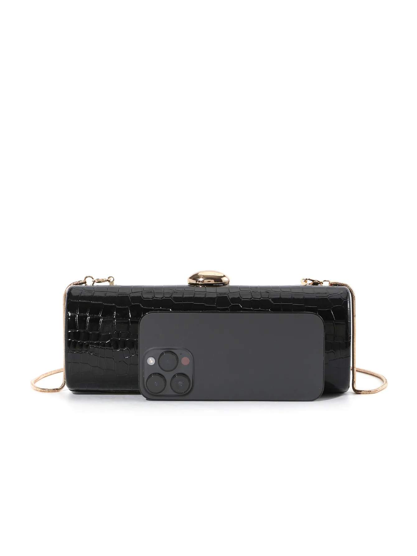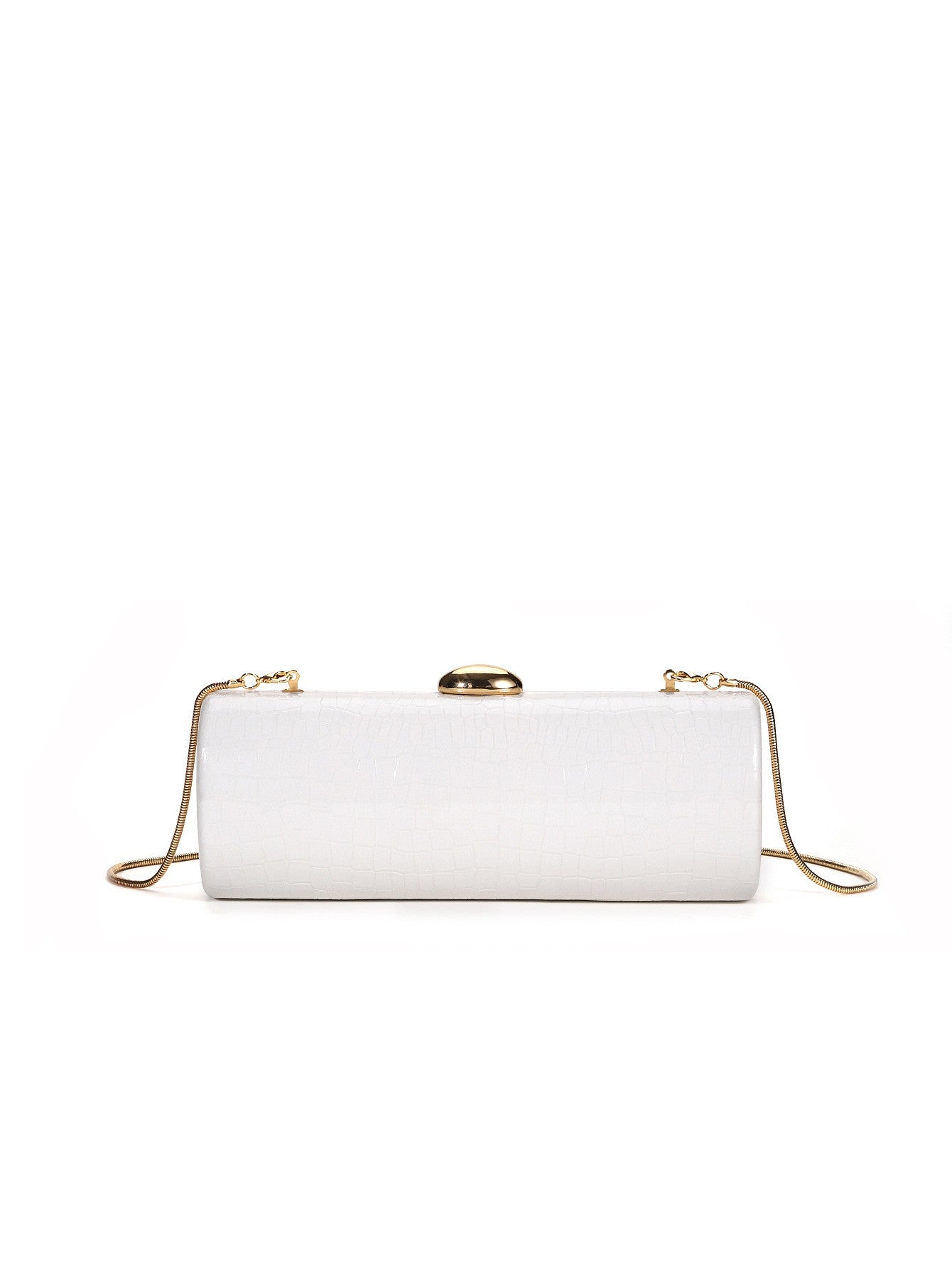 This clutch bag boasts a vintage long box design, exuding elegance and sophistication for any evening event.