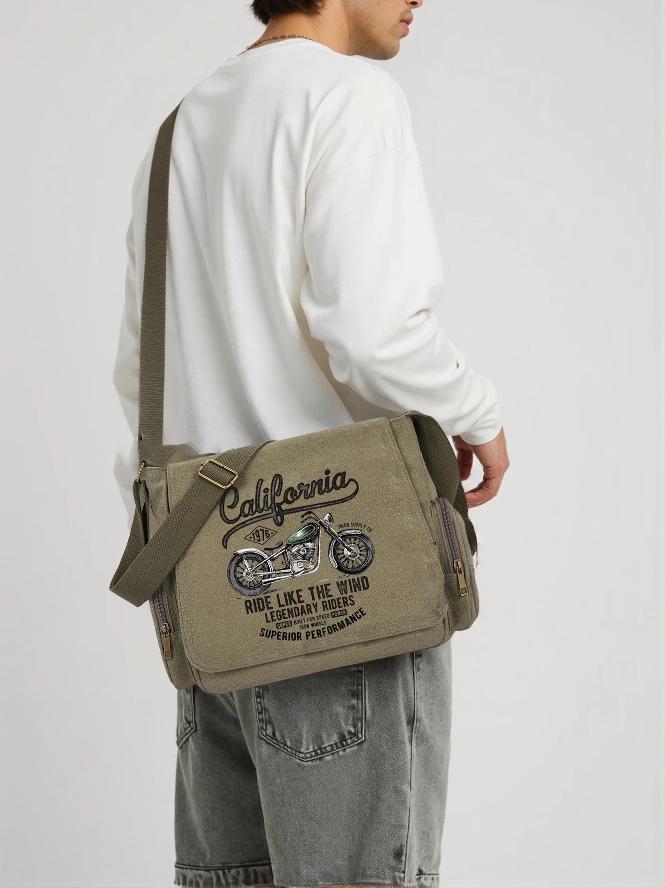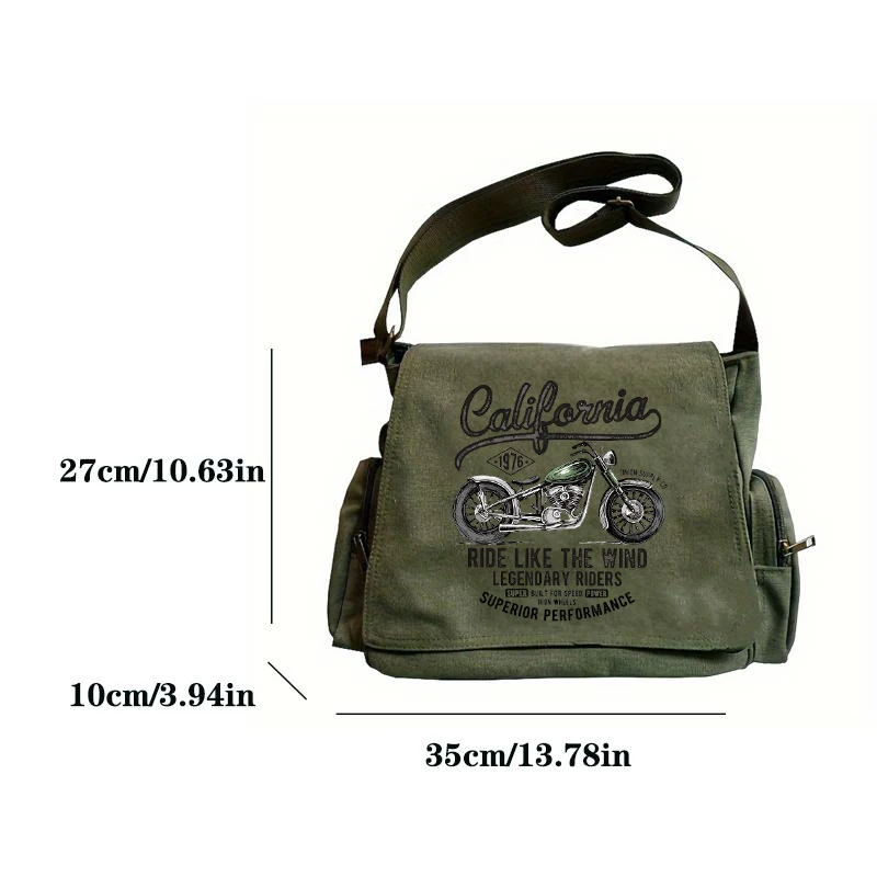 Vintage Men Canvas Messenger Bag Crossbody Bags Unisex Motorcycle Print Shoudler Bag Large Capacity Commuting Bag