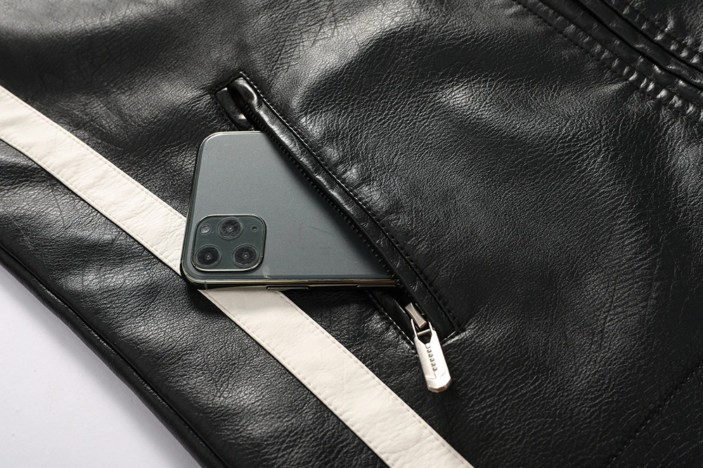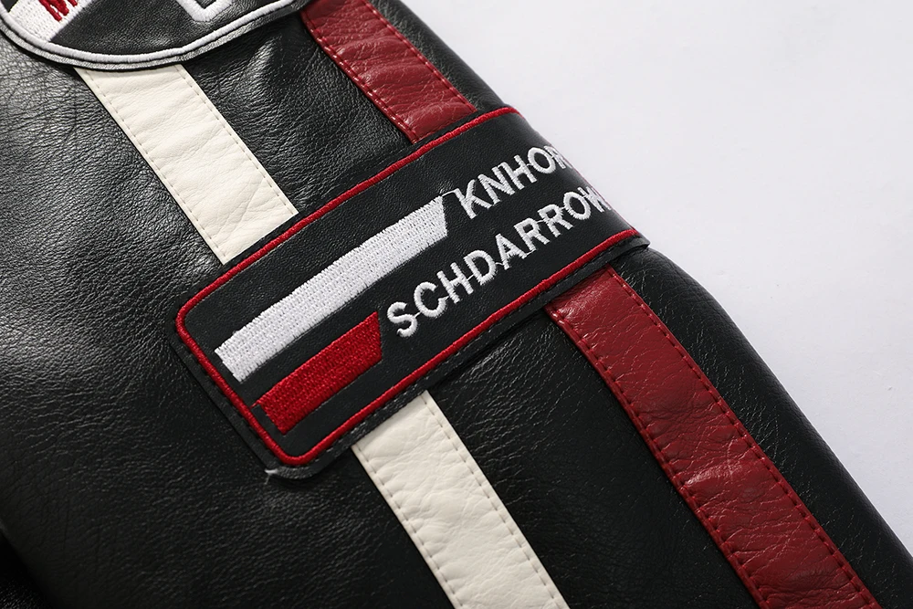 Winter Men Jacket Leather Men Motorcycle Jacket Logo Embroidery Bomber Jacket Slim Fit Coat Biker Coat Fashion Zipper Coat Male