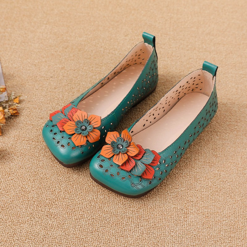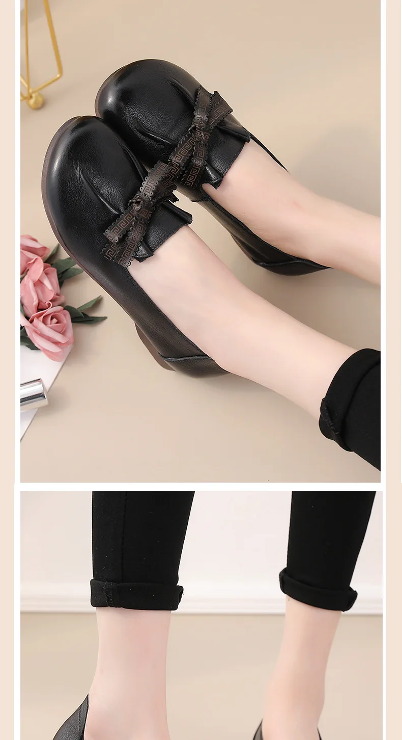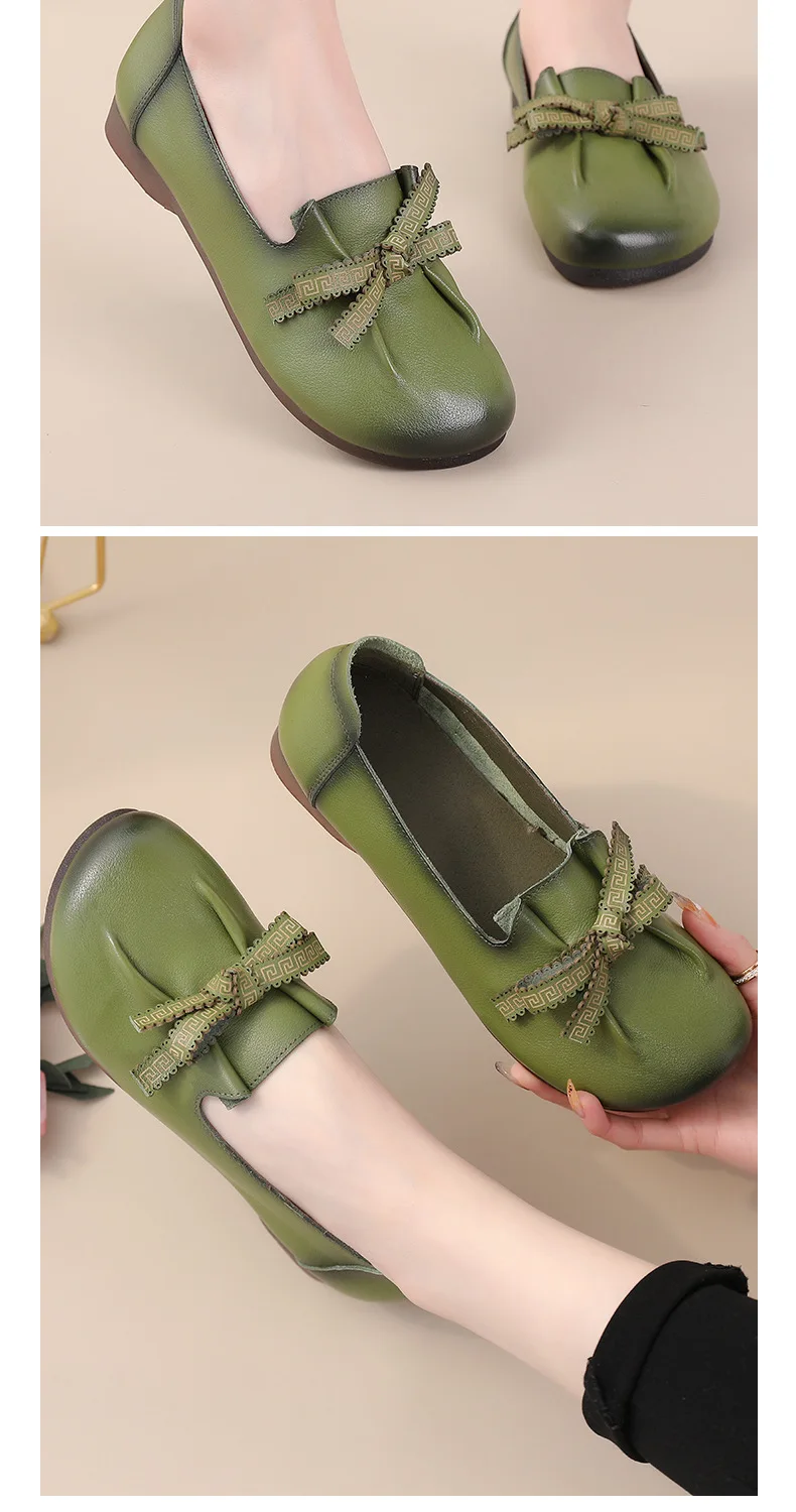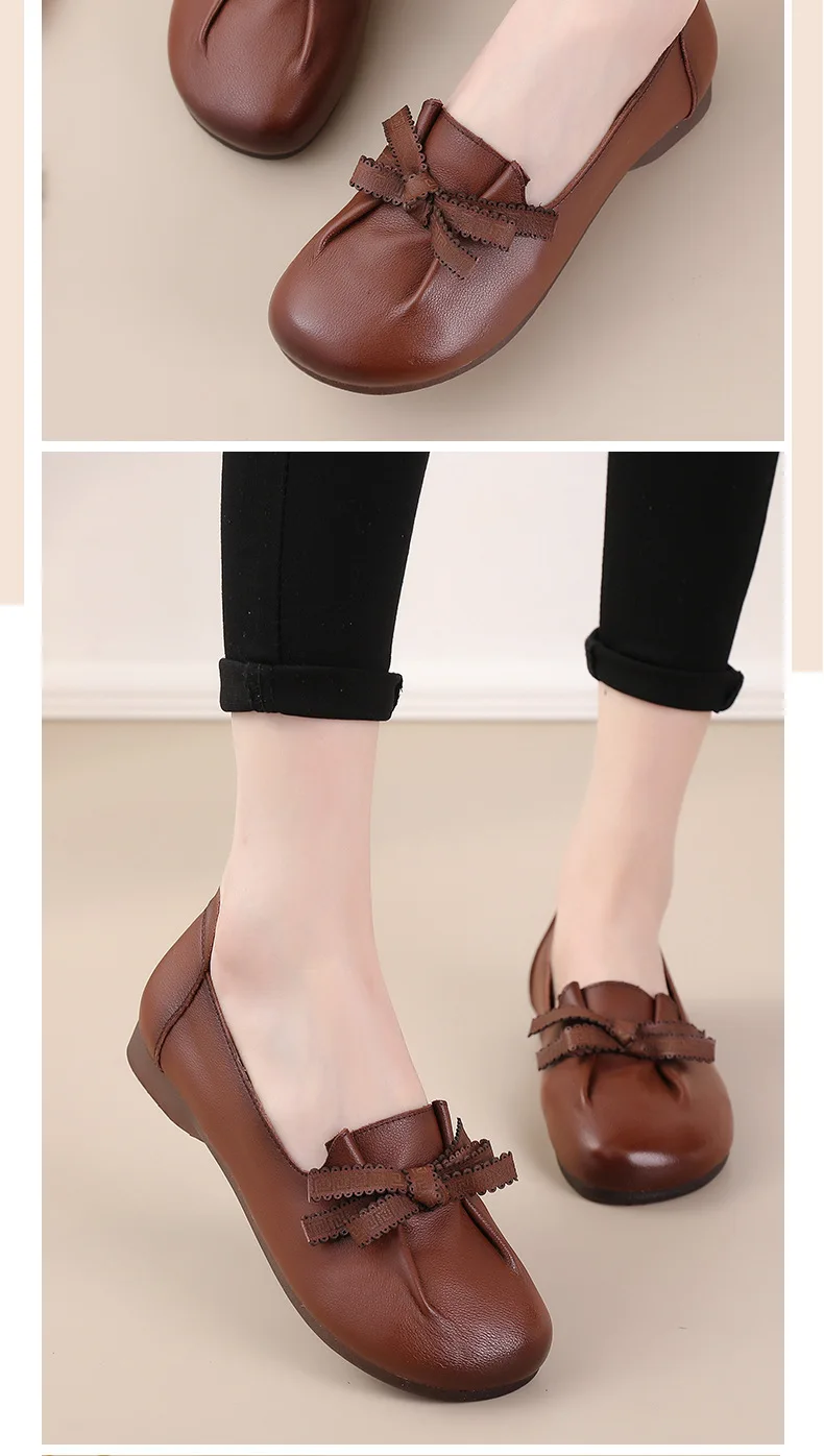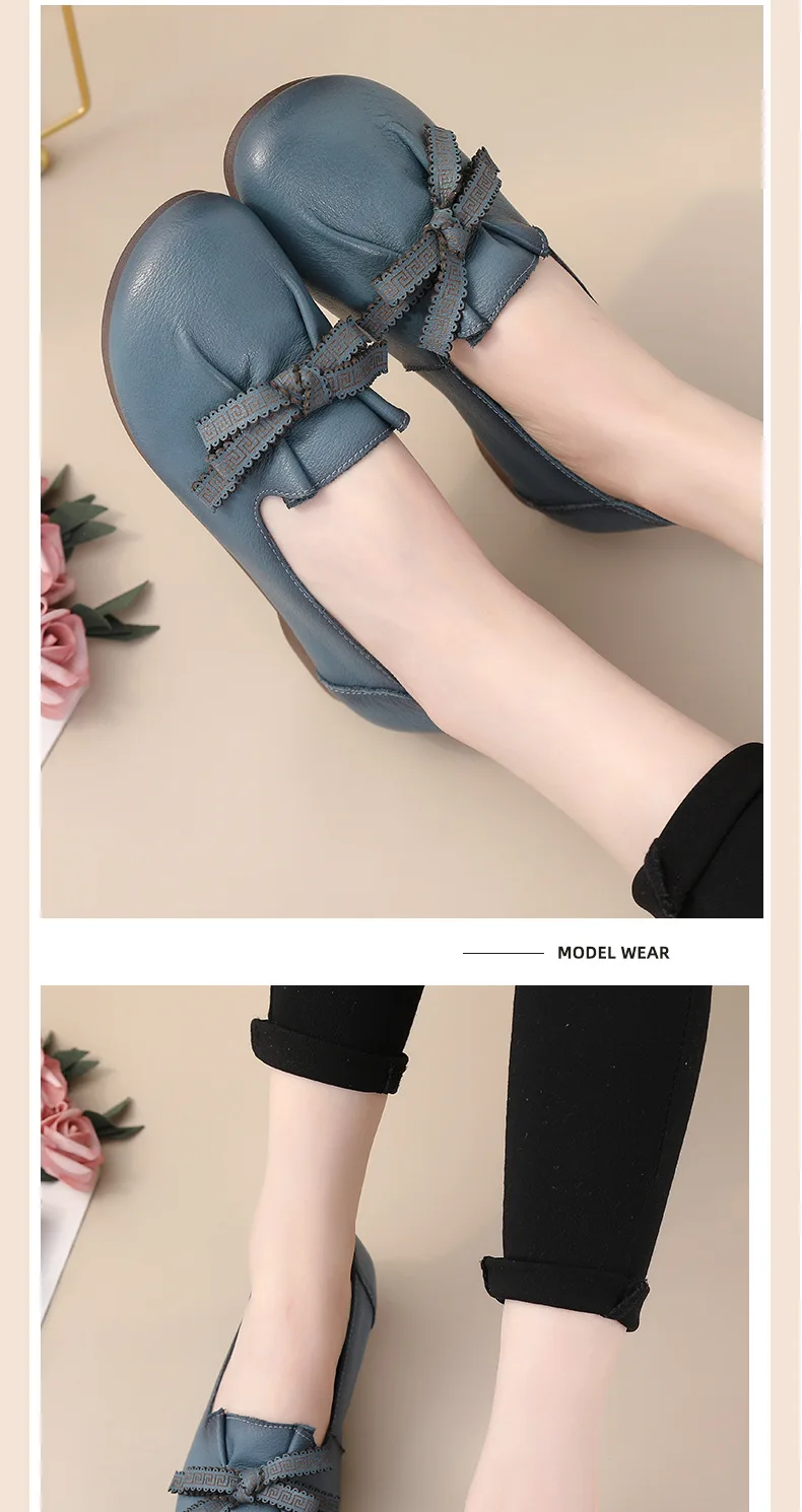 Vintage Plain Oxfords Shoes Women's Genuine Leather Flats Ladies Laced Up Moccasins Elderly Woman Square Toe Driving Loaferss