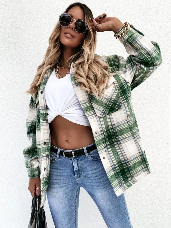 • Versatile Plaid Design : The jacket features a versatile plaid design, perfect for adding a touch of sophistication to any autumn or winter outfit.