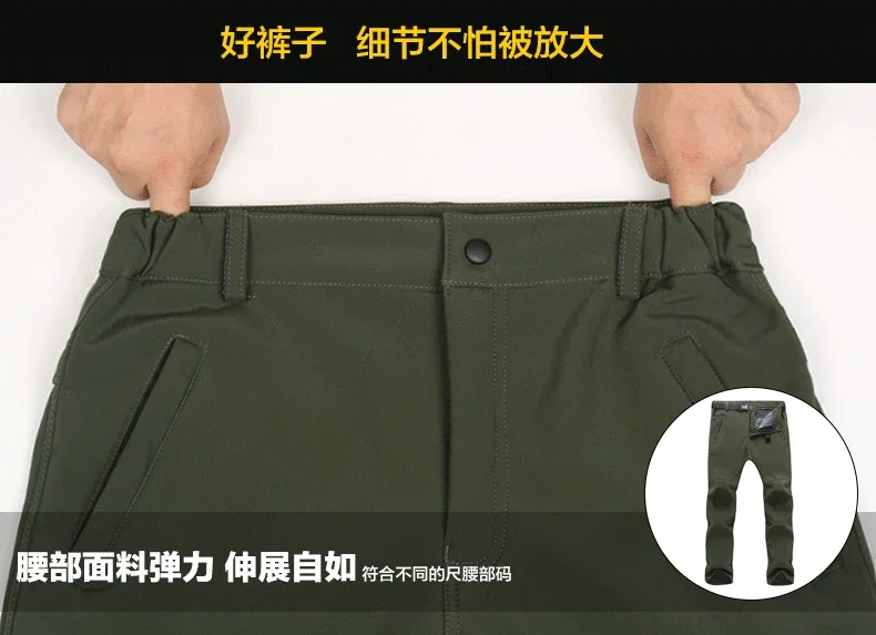 Warm Winter Men Soft Shell Pants Travel Waterproof Outdoor Camping&Hiking Pants Fleece Windproof Skiing Trousers