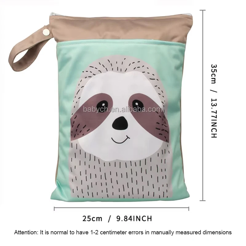 Washable PUL Waterproof Wet Dry Bag - Cute Print, 2 Pockets for Cloth Diapers, Travel, Beach, Pool & Gym| Toiletry Bag