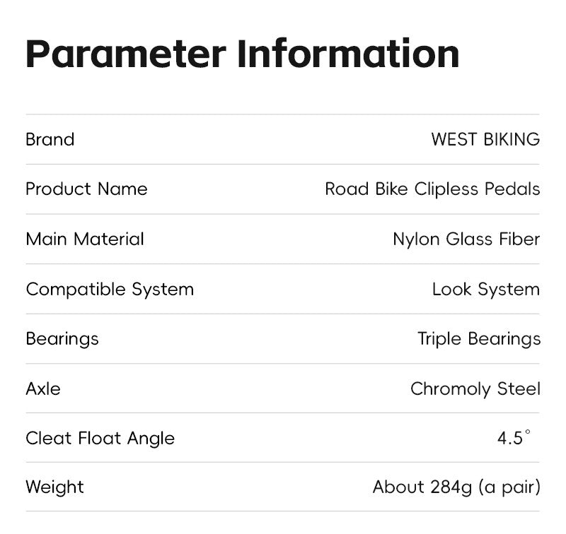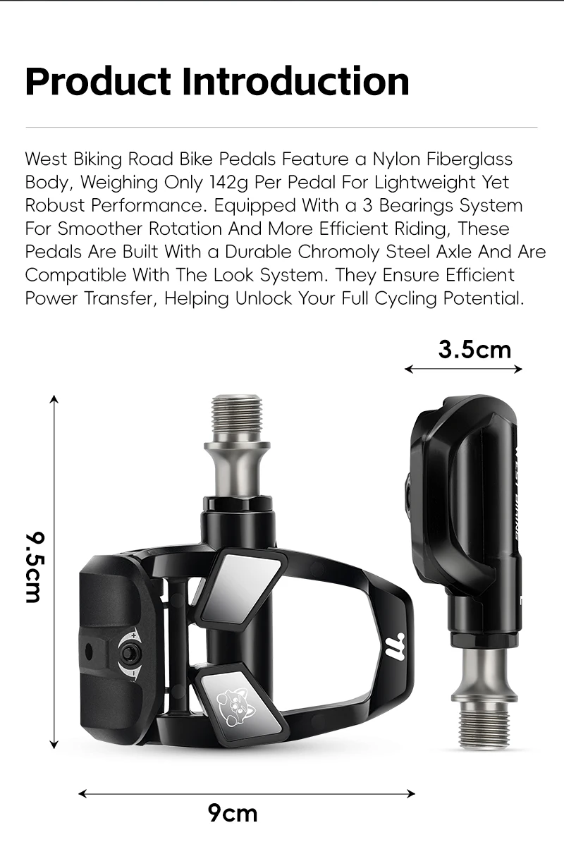 WEST BIKING Road Bike Pedals Nylon Bicycle Locking Pedals Cycling Bearing Cleats Clipless Pedal Look System With Locking Plates