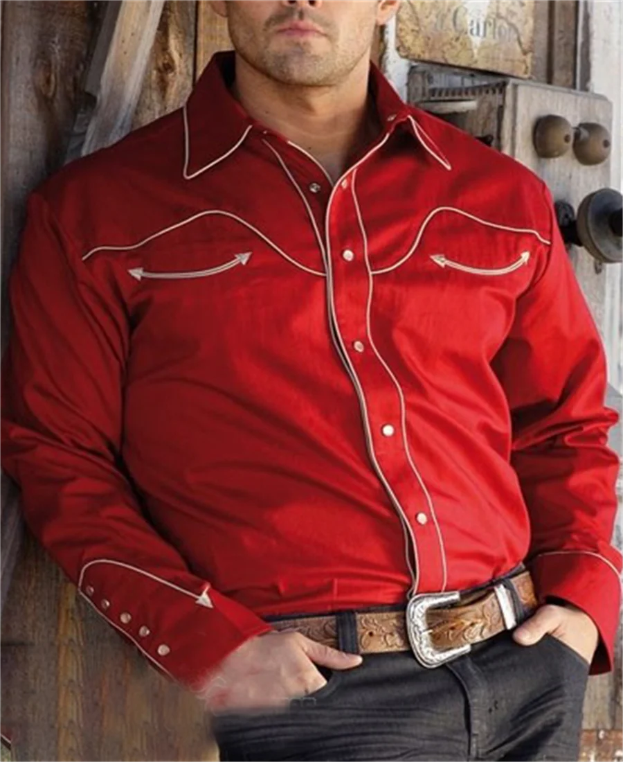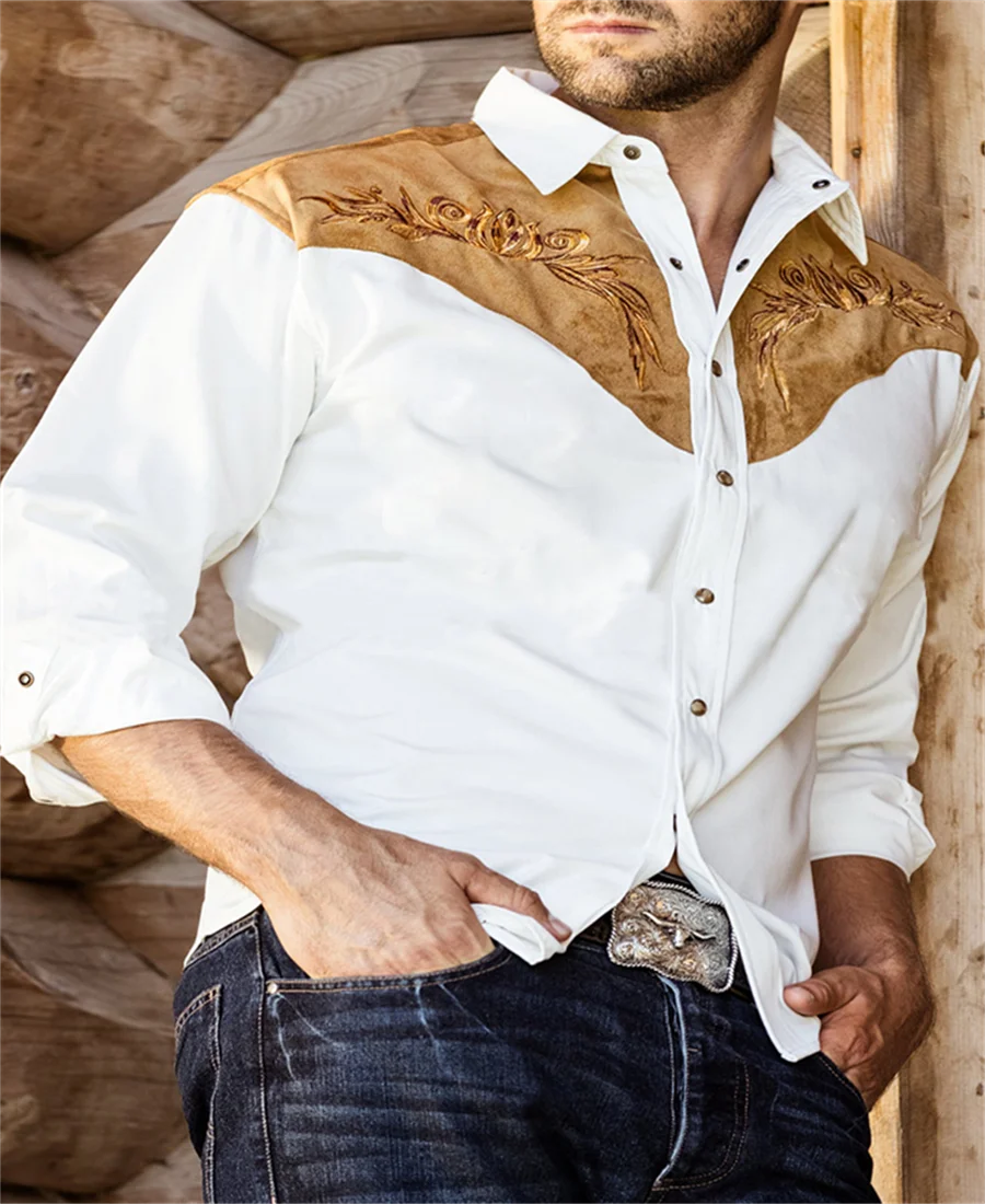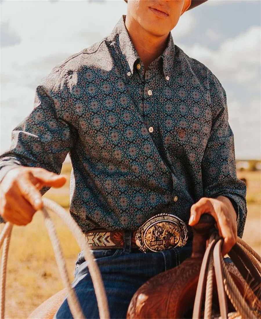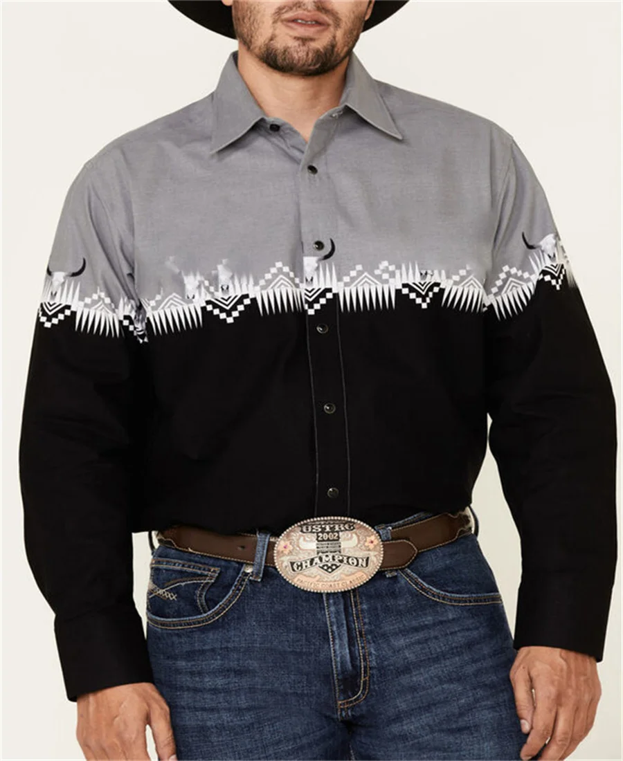 Western Tribal Shirt Denim Men's Casual Outdoor Party HD Pattern Button Soft Comfortable Lapel Shirt Long Sleeve T-Shirt