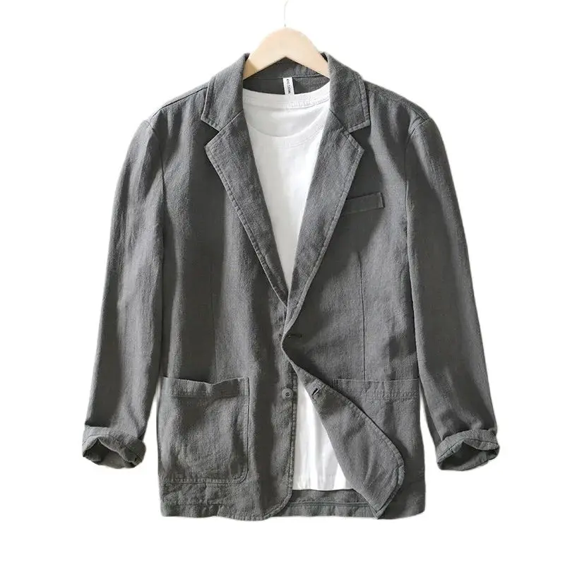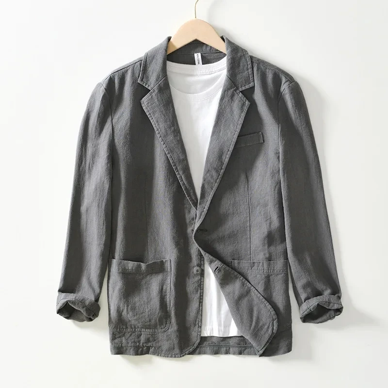 White Cotton Linen Suit Coat Men's Spring Summer Pure Color Slim Casual Business Thin Mens Blazer Jacket Comfortable Breathable