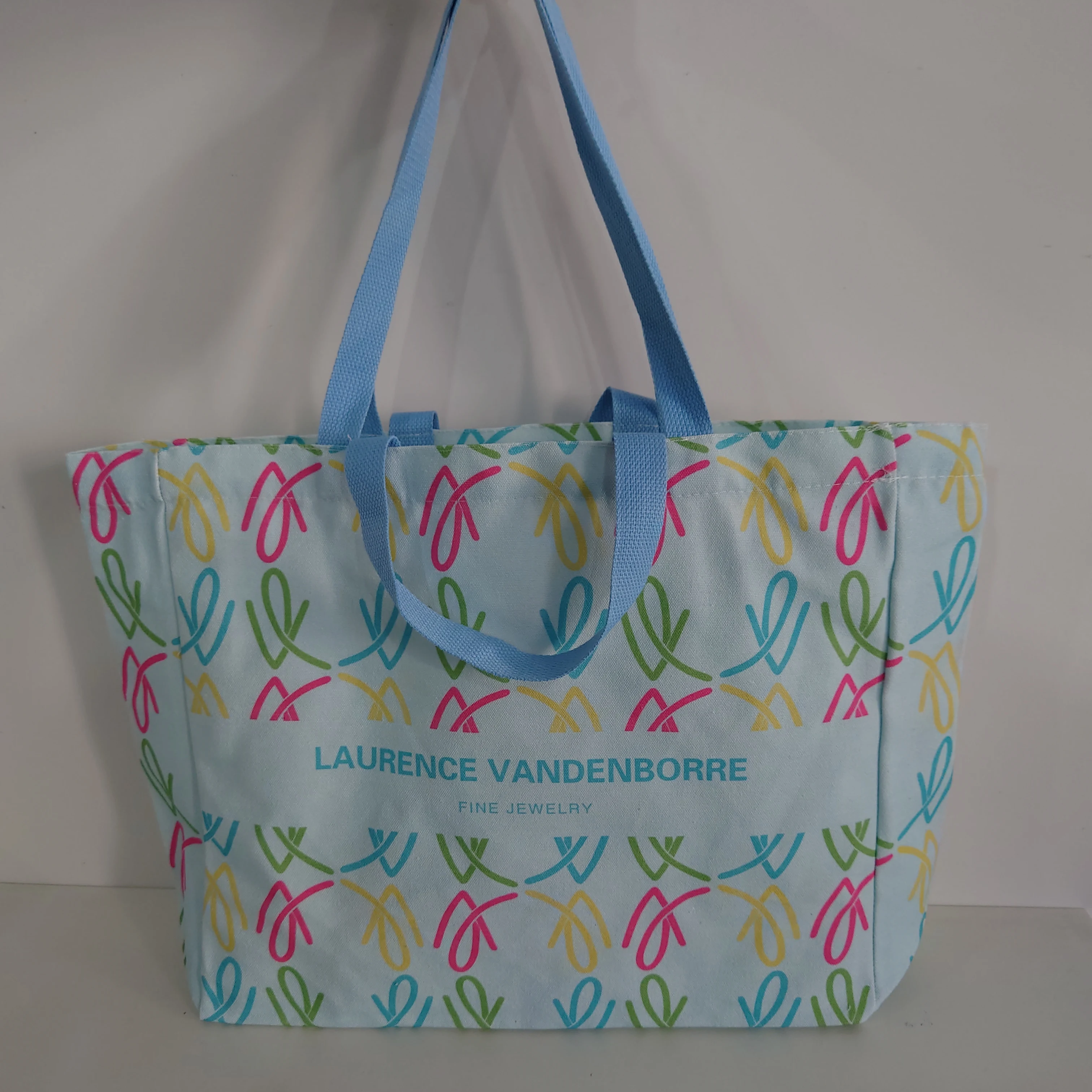 Wholesale 100pcs/Lot Custom Logo Printed Natural Cotton Canvas Shopping Take Out Bags with Double Handles for Trade Show School