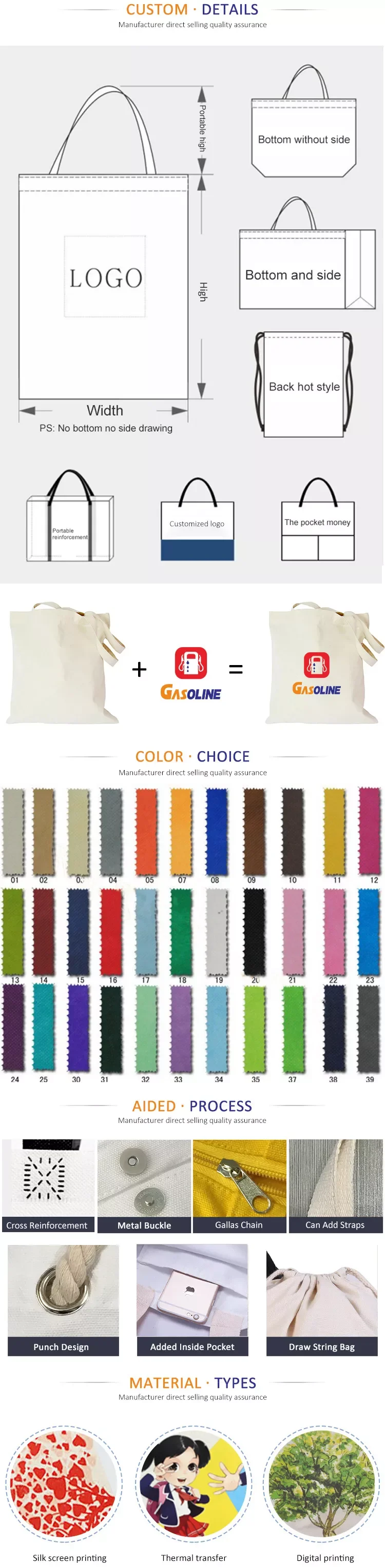 Our factory specialize in the production of different kind of bags(non woven bags,metallic non woven bags,cotton bags,paper bags,backpack…),different kind of bags with printing your logo.