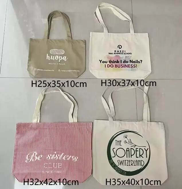 Wholesale 100pcs/Lot High Quality Customize Logo Size Plain Cotton Canvas Handbag Reusable Shopping Tote Bags for Women School