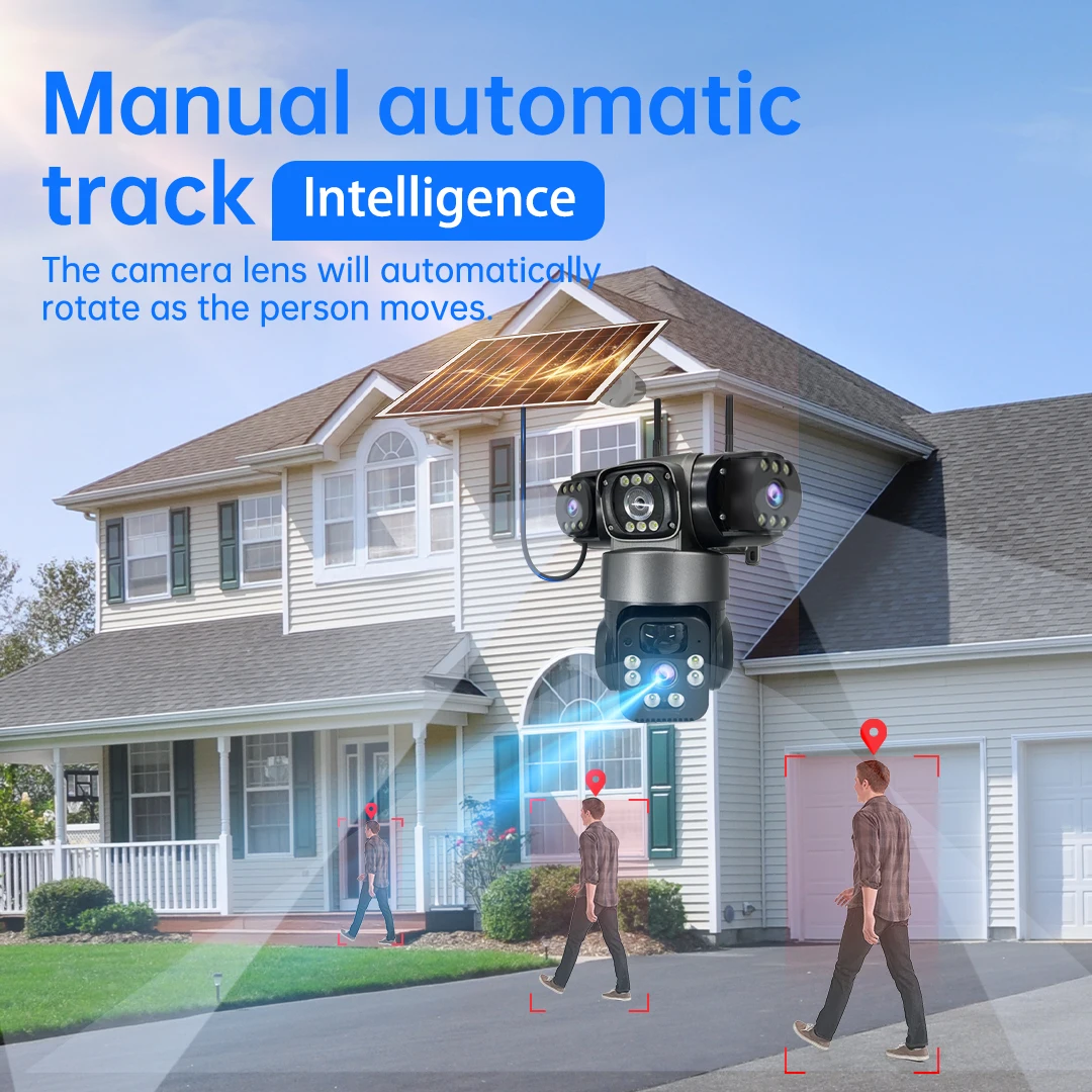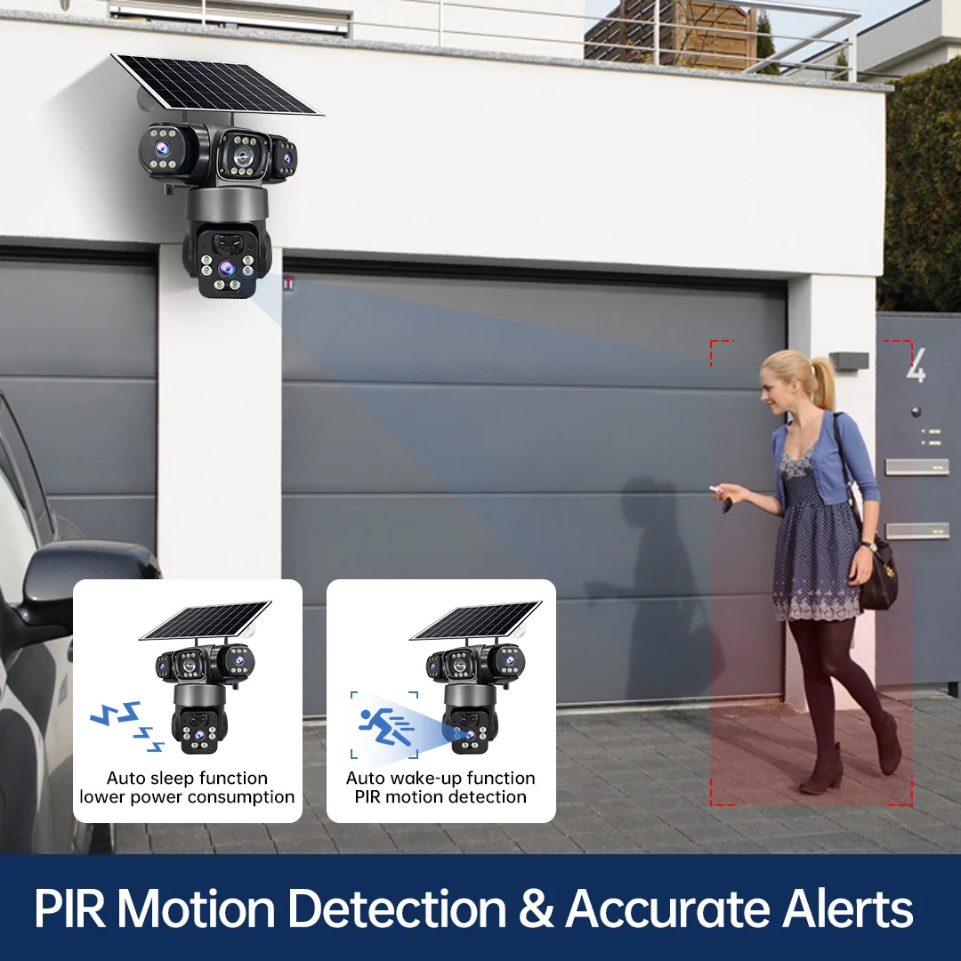 WiFi Solar Camera Three Lenses Outdoor 15MP 8K HD Low Power Battery IP Camera PIR Night Vision V380 Pro CCTV Security Protection