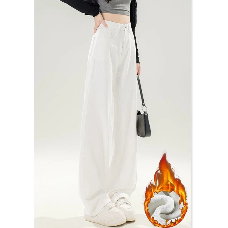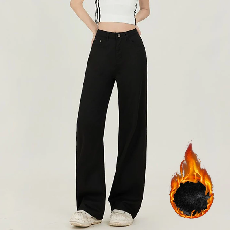 Winter Girls Fleece Thermal High Waist Jeans Female Snow Warm Plush Denim Pants Lady Casual Daily Straight Leg Trousers