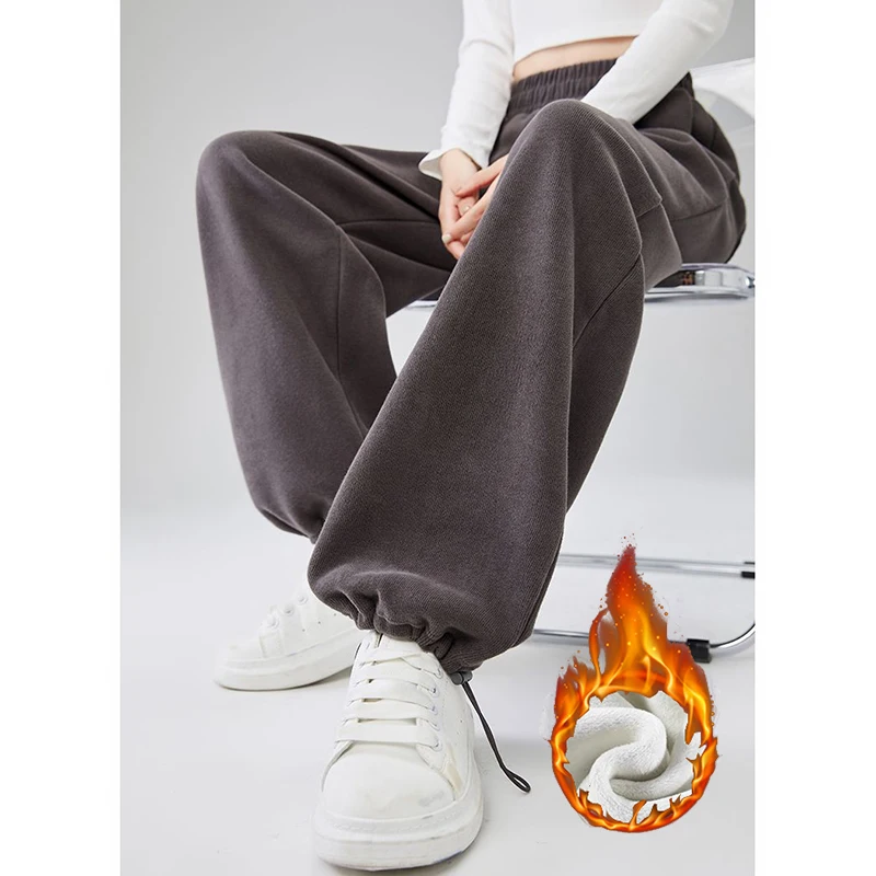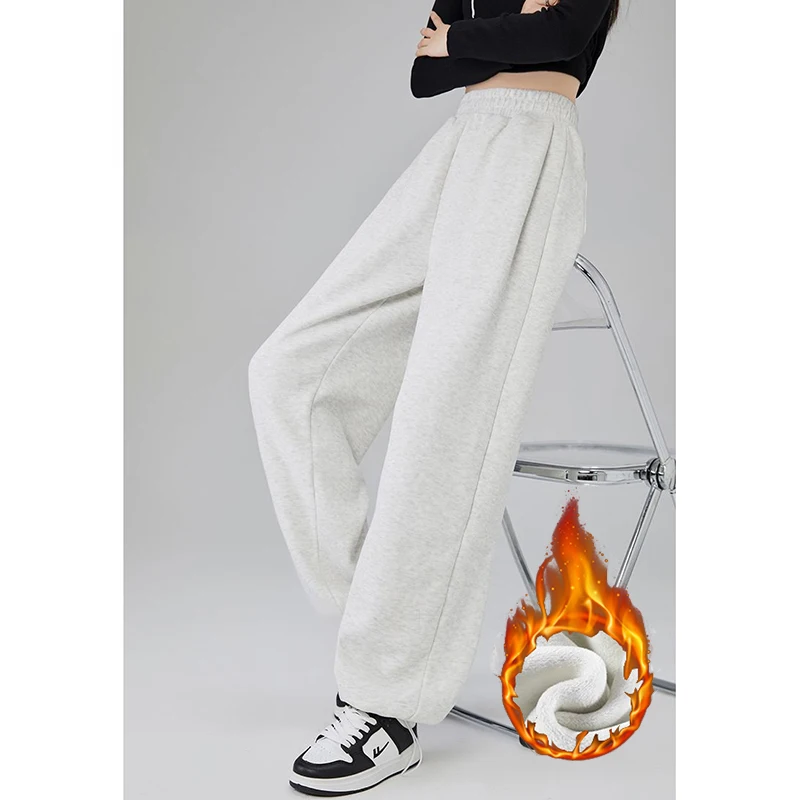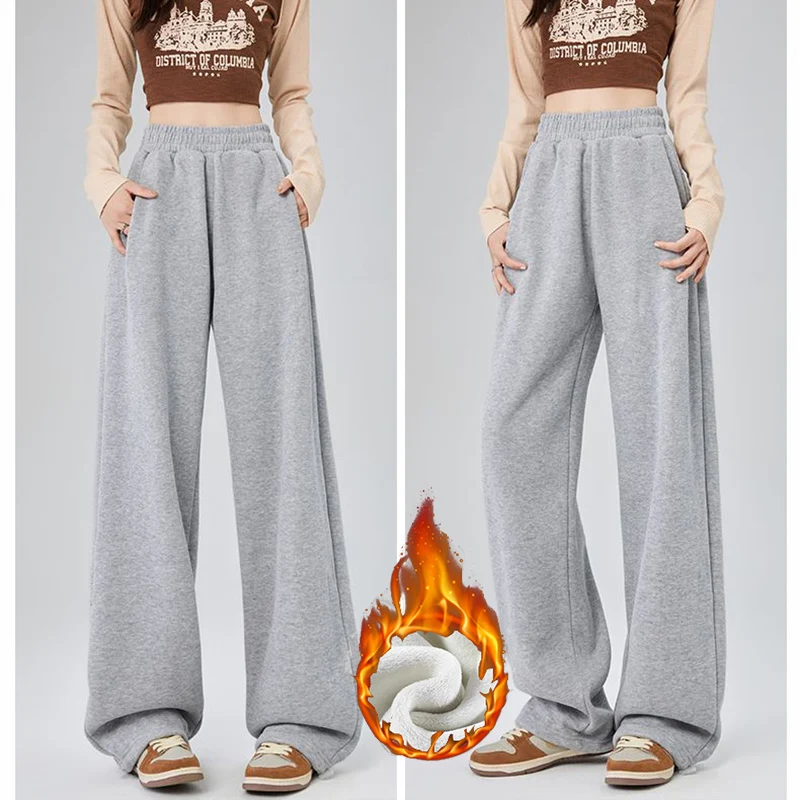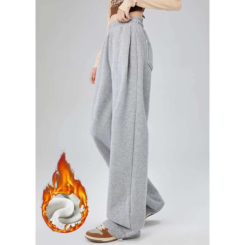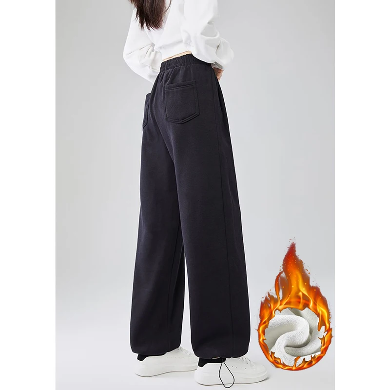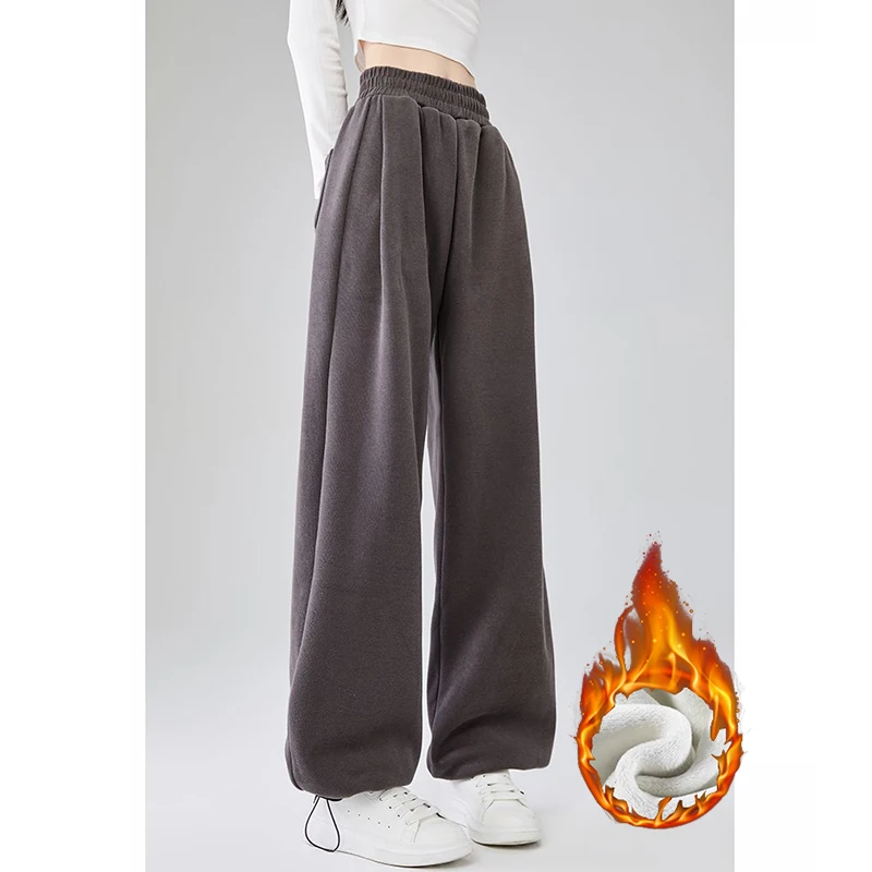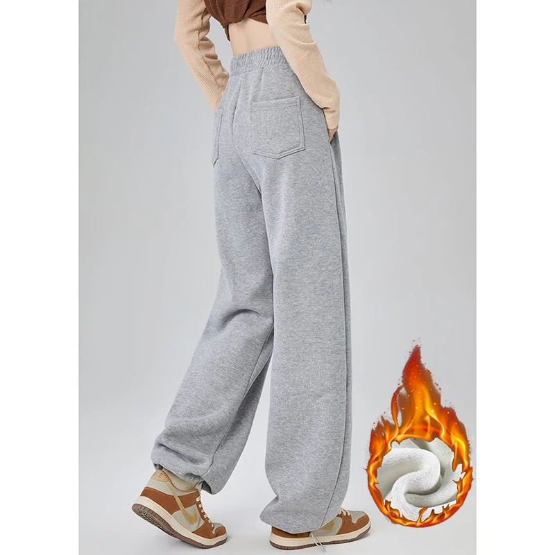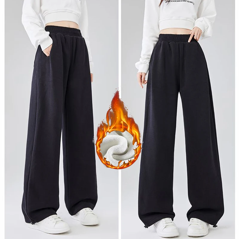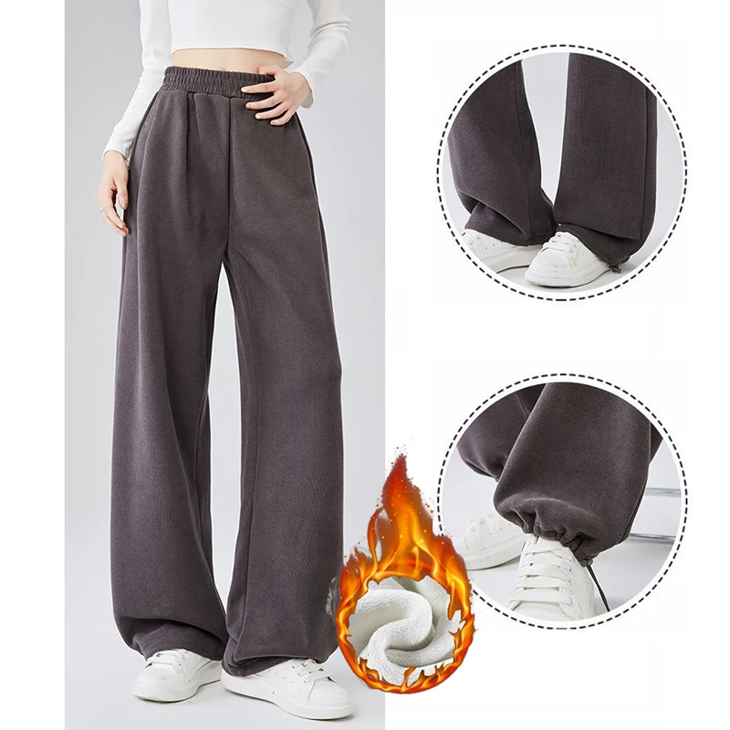 Winter Lady Snow Warm Thin Straight Leg Pants Girls Classic Daily Plush Trousers Women High Waist Thermal Fleece Pants