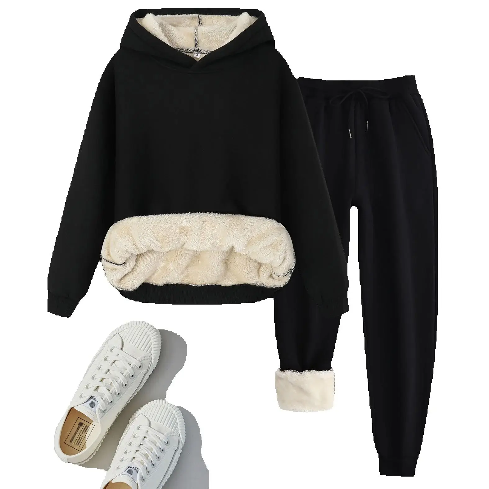 Winter Men Solid Thickened Lamb Velvet Hoodies Set Warm Fleece Sweatshirt Sweatpants 2pcs Thickened Casual Tracksuit
